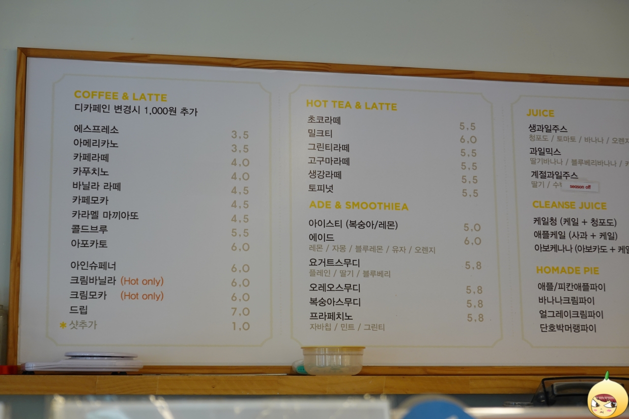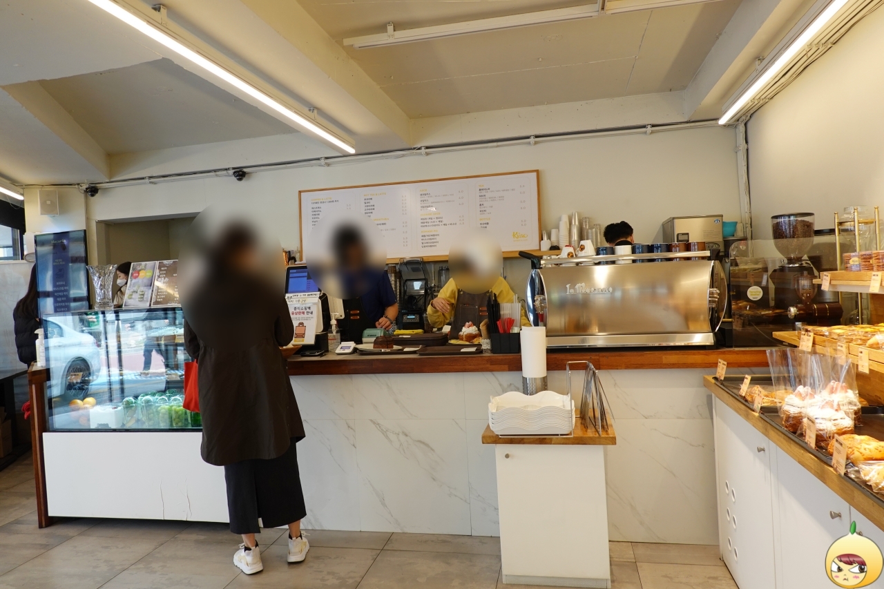 빵에 비해 음료 특히 아메리카노(3,500원)는 꽤나 저렴한 편이다. 그때문인지 디카페인(1,000원 추가)을 주문하는 사람들이 많다. 따라서 할까 하다가 그들은 커피만 주문하지만, 빵을 2개나 골랐기에 그냥 "아이스 아메리카노 주세요" 했다.