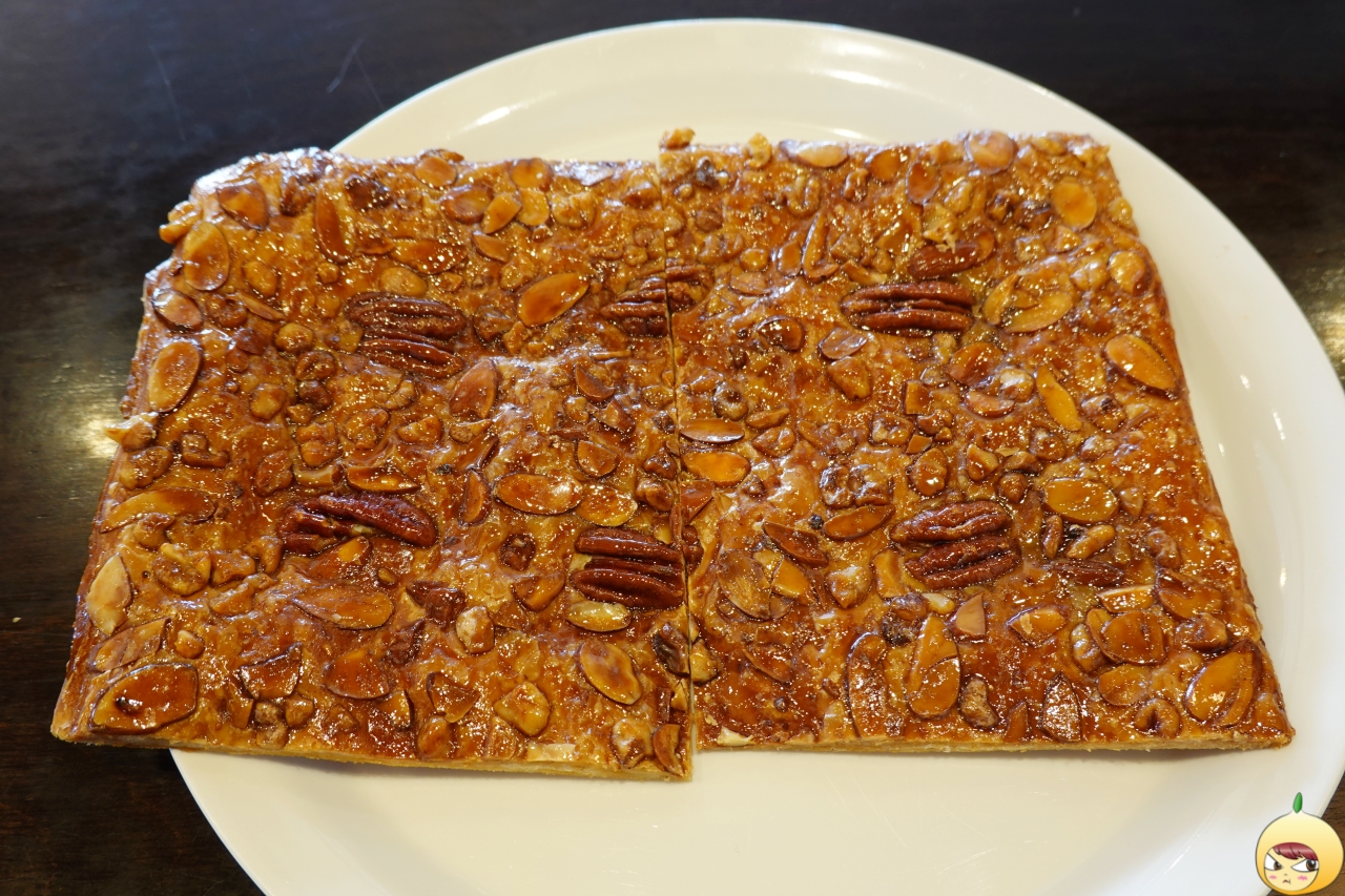 넓고 얇아서 엄청 바삭하겠구나 했는데, 보기와 다르게 촉촉하다. 과자처럼 바삭하게 으깨지지 않고, 꾸덕하게 부서진다. 하지만 식감은 견과류로 인해 바삭하고 맛은 시럽이 있어 달달하면서 겁나 고소하다. 끼니로 먹기에는 많이 부족하지만, 커피와는 잘 어울린다.