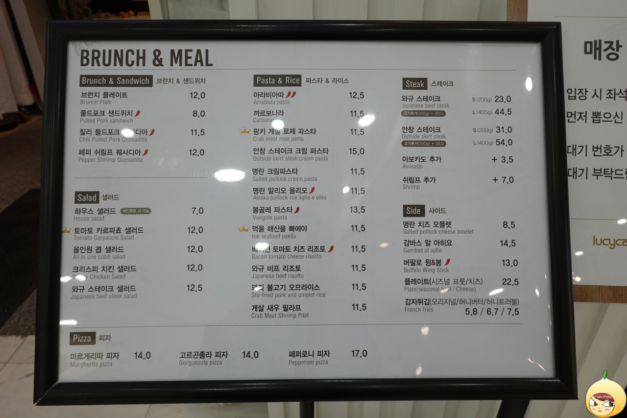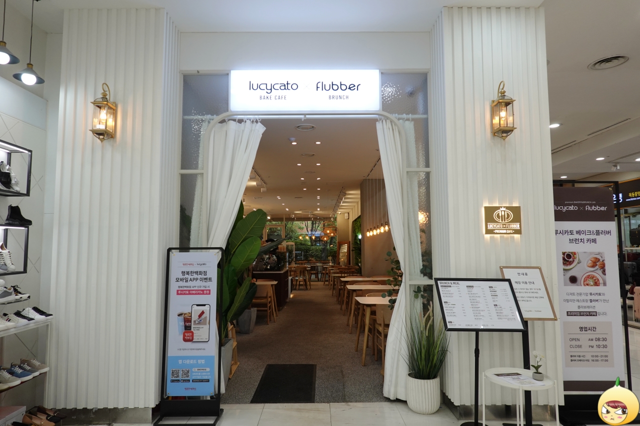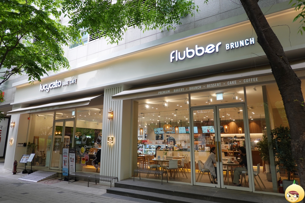 풀네임은 루시카토 플러버 프리미엄 베이커리&브런치 카페다. 즉, 빵도 먹고, 브런치도 먹을 수 있는 카페다. 루시카토는 디저트 전문기업이고 플러버는 이탈리안 레스토랑이라고 한다. 이들의 콜라보레이션으로 프리미엄 브런치 카페가 탄생했다.
