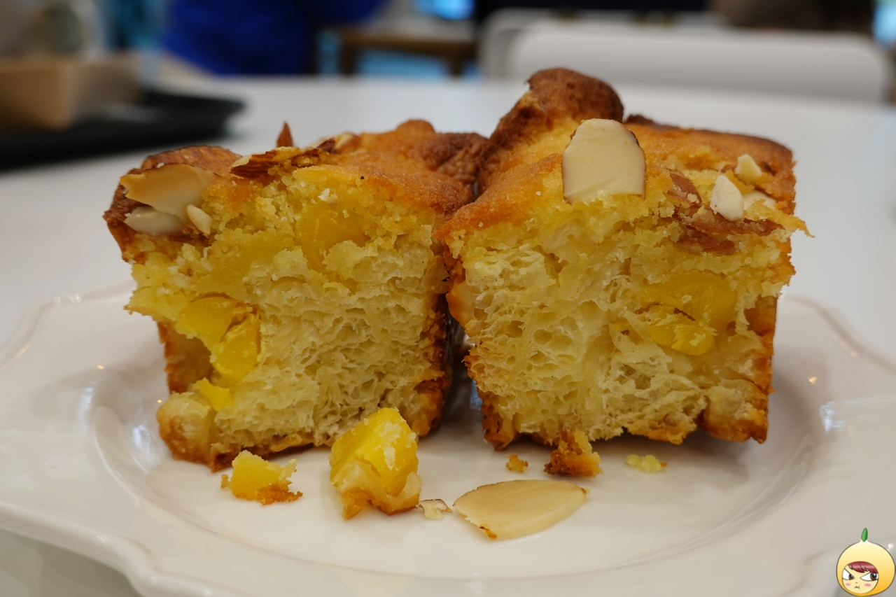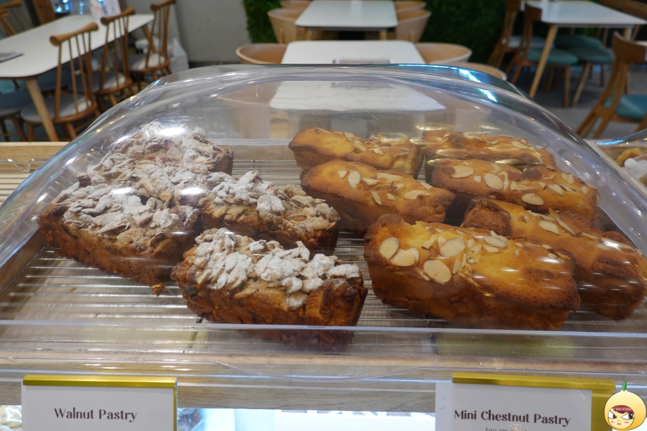 결이 살아있는 밤식빵이다. 안에 밤이 들어 있다 보니, 결은 선명하지 않지만 일빈적인 밤식빵보다는 페스츄리라서 좀 더 고소하다. 달달함은 밤이, 고소함은 아몬드가 담당하고 있다. 촉촉한 소금빵과는 달리, 미니밤 페스츄리(2,500원)는 겁바속촉이다.
