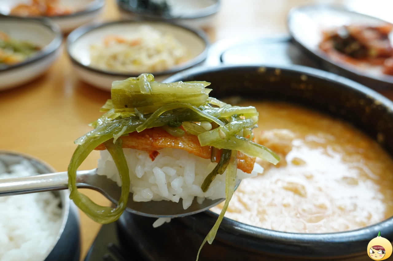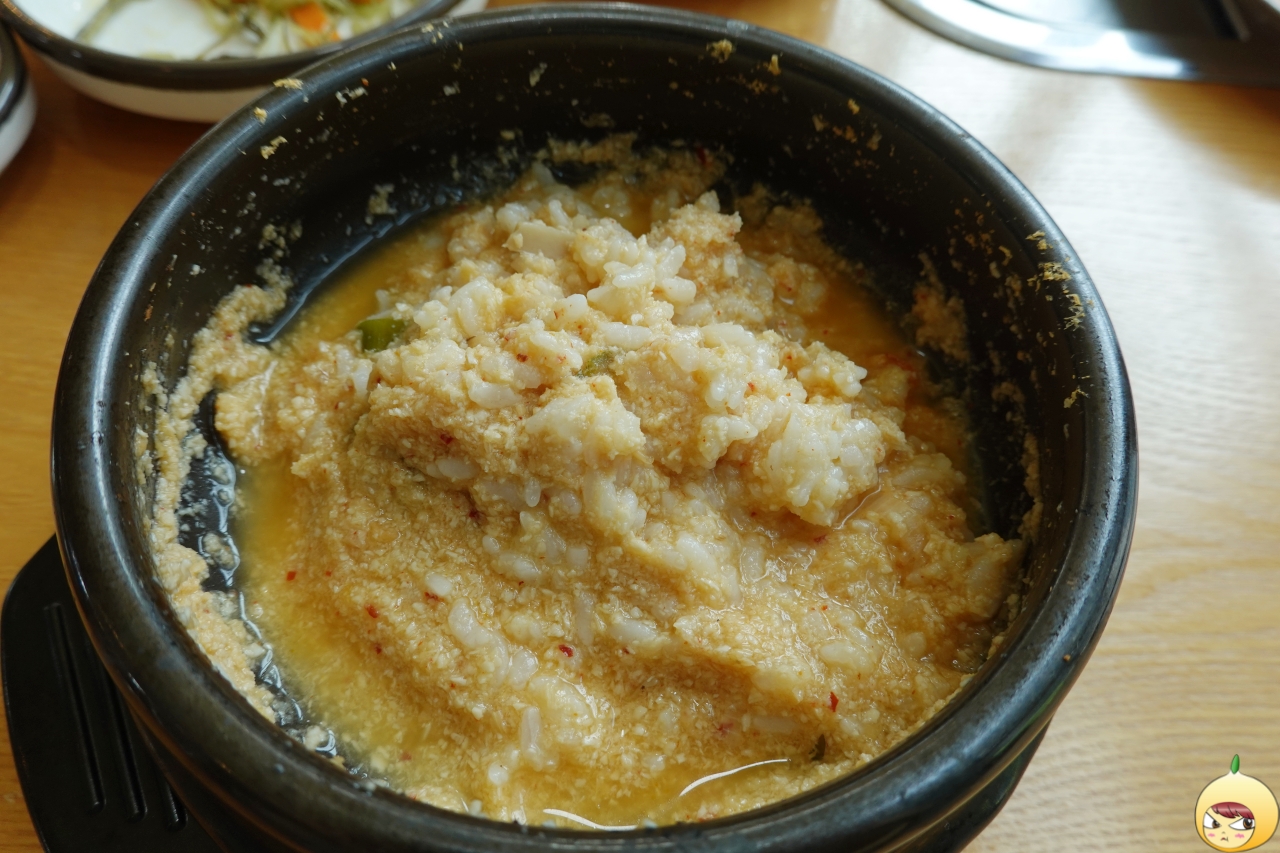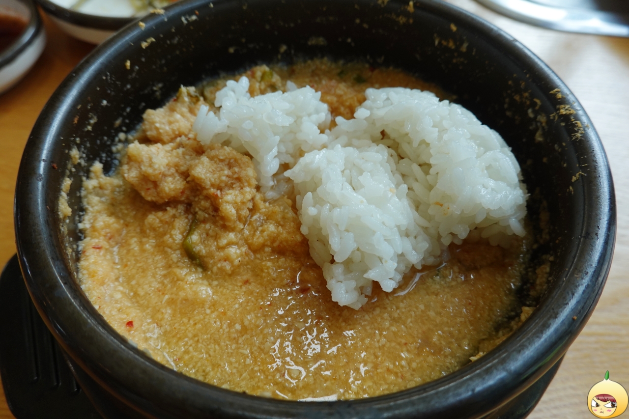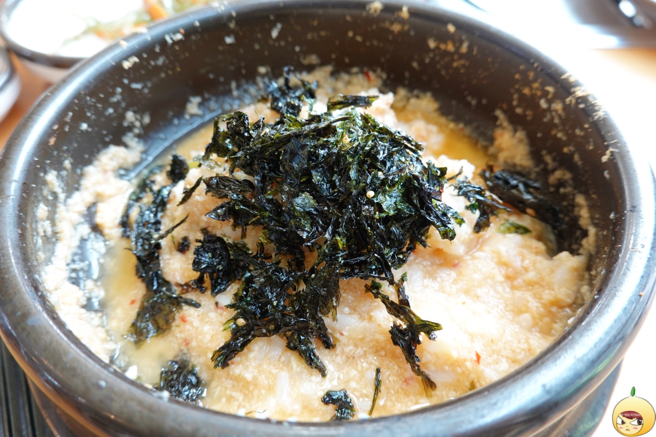 뜨거운 열기가 느껴지지 않을때 밥을 투하한다. 그리고 남아 있는 반찬 중에서 달달함을 담당하고 있는 김자반을 추가로 넣는다. 김은 어느 음식과도 잘 어울리니깐. 디저트로 순두부를 한번 더 먹으려고 했는데, 아까는 배고프다고 난리더니 이제는 무리라고 위님(?)이 거부를 한다.