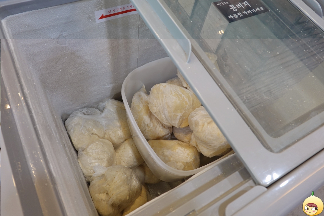 계산대 옆에 있는 작은 냉장고에 이런 문구가 있다. '콩비지 마음껏 가져가세요.' 정말 갖고 오고 싶었지만, 날이 더워서 쉴까봐 선뜻 담아오지 못했다. 고로 다음에는 보냉백을 챙겨서 가야겠다. 참, 국내산 콩 100%라고 하더니, 청주농산에서 올라온 국내산 백태로 순두부를 만드나 보다.
