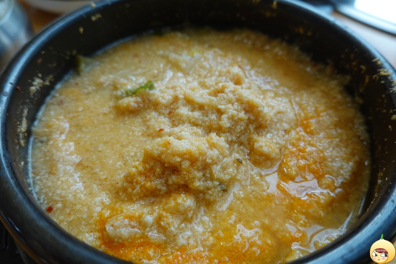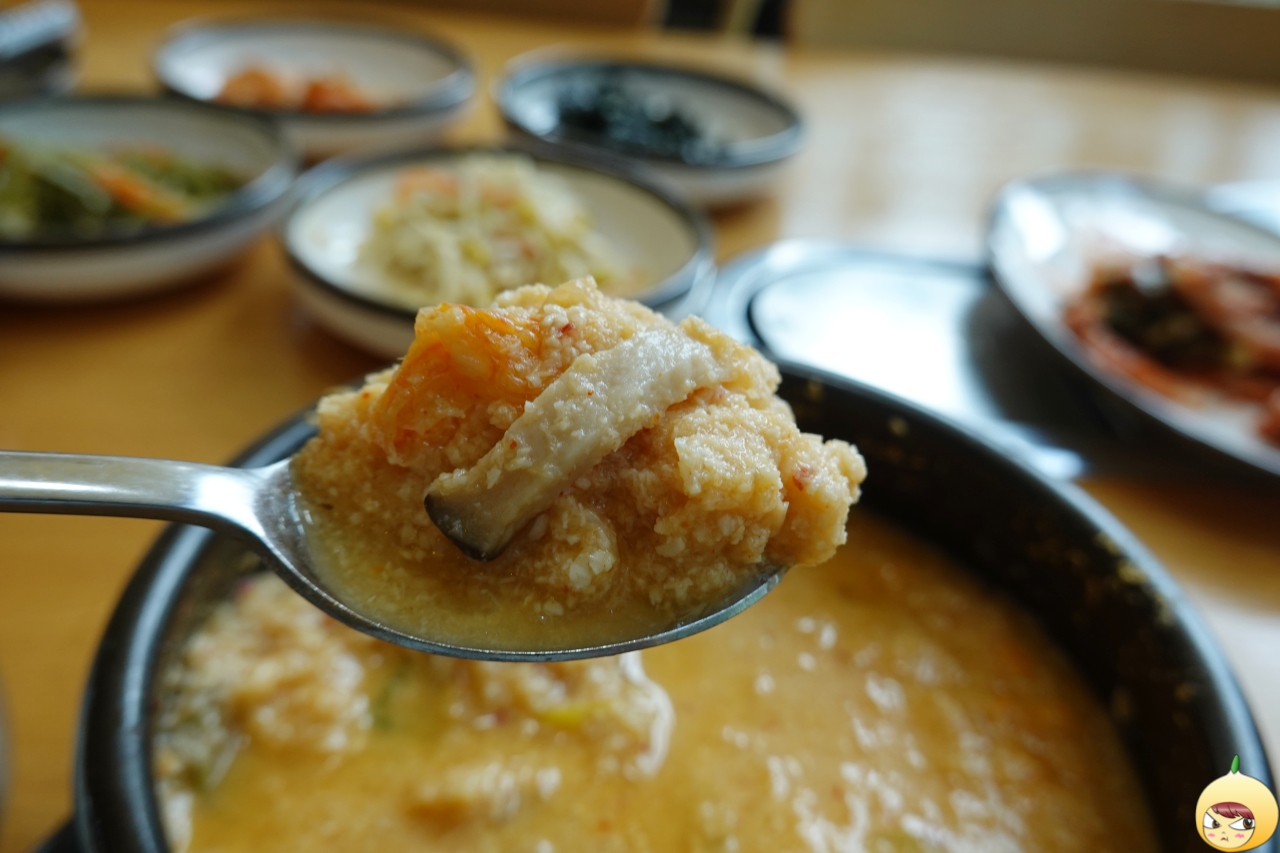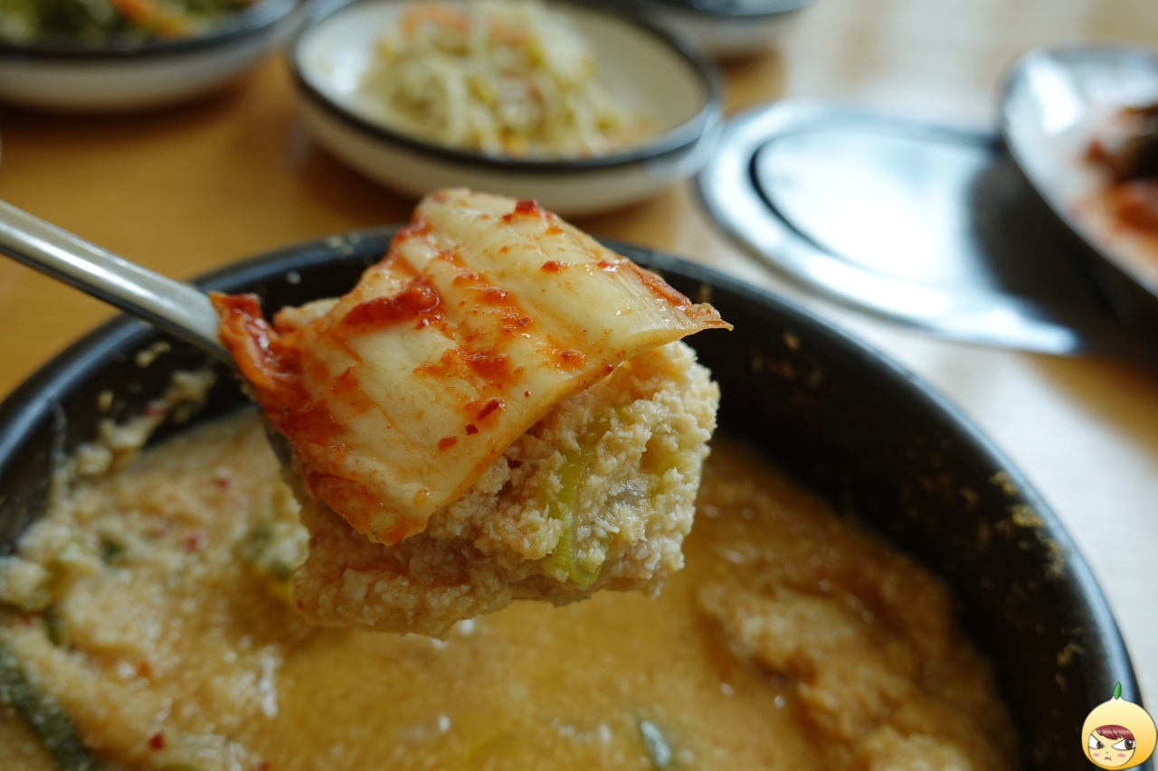 하지만 진정한 비지는 찌꺼기로 거친 질감을 갖고 있어야 한다. 이런 비지로 끓여야 찌개가 몽실몽실하니 알갱이가 살아있다. 순두부에 반찬 그리고 비지찌개까지 완전 내스타일인데, 뚝배기라서 겁나 뜨겁다.