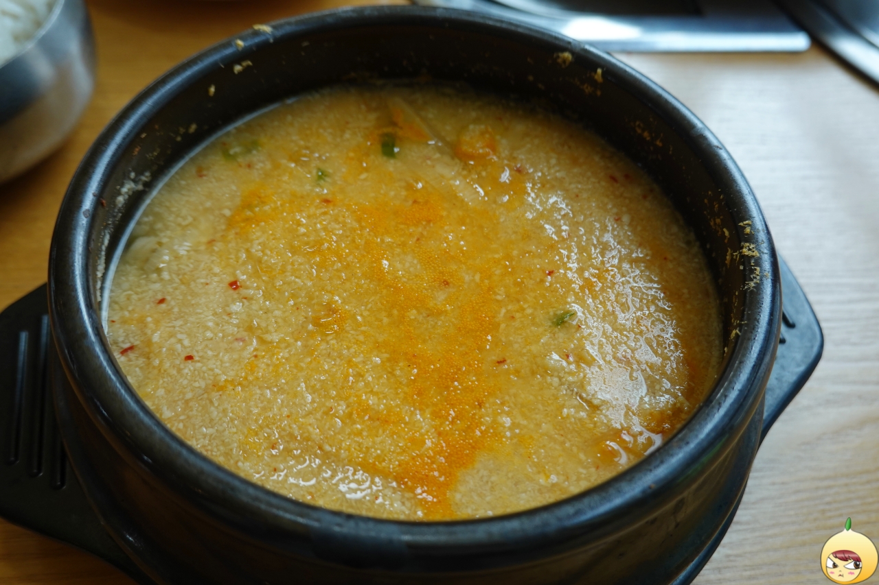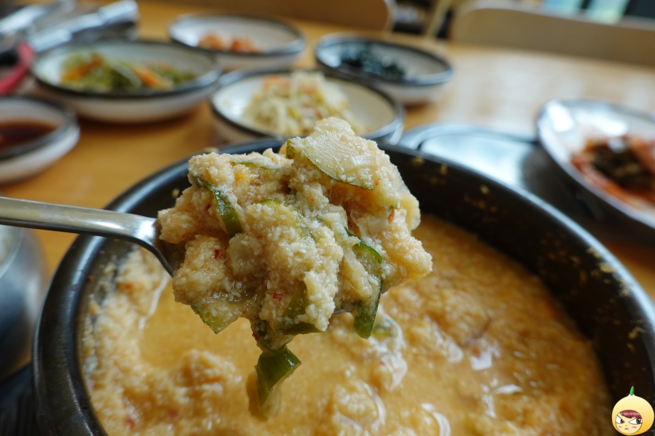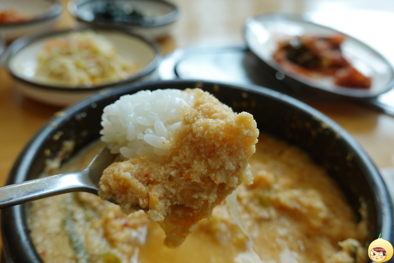 하지만 진정한 비지는 찌꺼기로 거친 질감을 갖고 있어야 한다. 이런 비지로 끓여야 찌개가 몽실몽실하니 알갱이가 살아있다. 순두부에 반찬 그리고 비지찌개까지 완전 내스타일인데, 뚝배기라서 겁나 뜨겁다.
