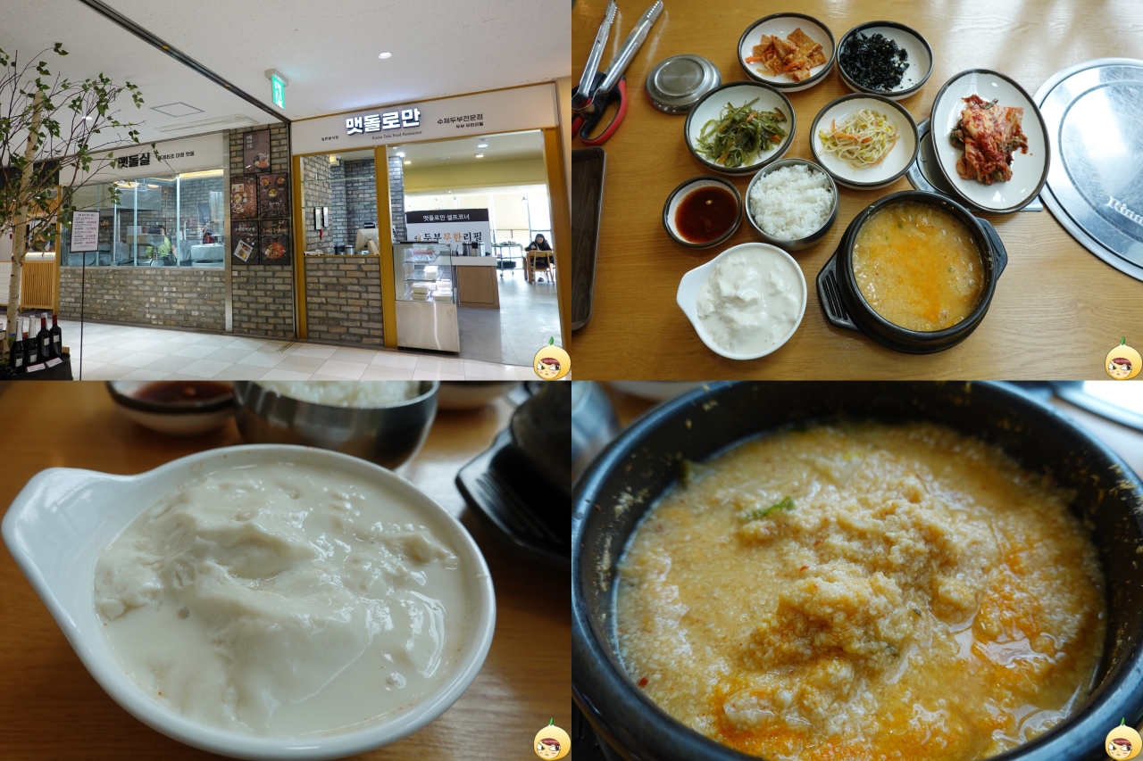 "아부지는 순두부가 싫다고 하셨어~" 순두부찌개는 우리집 밥상에서 찾을 수 없다. 밖에서 먹는 순두부찌개는 대체로 자극적인 빨간 양념 범벅이다. 본연의 순두부는 먹을 수 없는 것일까? 아니다. 서울시 금천구 가산동 롯데팩토리 아울렛 3층에 있는 맷돌로만으로 가면 된다. 쉿~ 순두부가 무한리필이라는 거, 우리들만의 비밀.