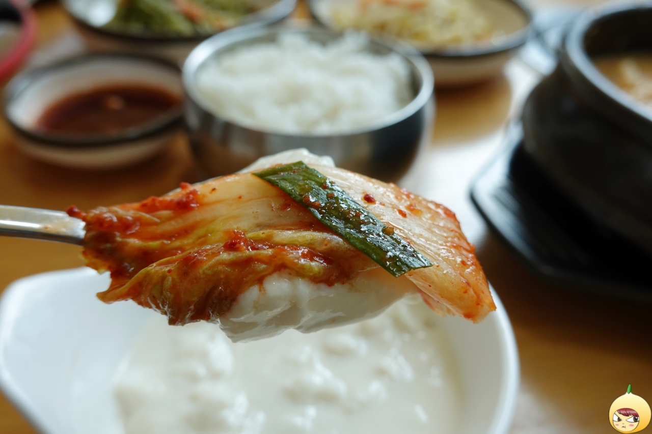 그리고 매워 보이지만 맵지 않은 겉절이와 양이 많지 않은 공깃밥이 나왔다. 순두부만으로도 만족했기에, 반찬에 대한 기대는 거의 없었다.