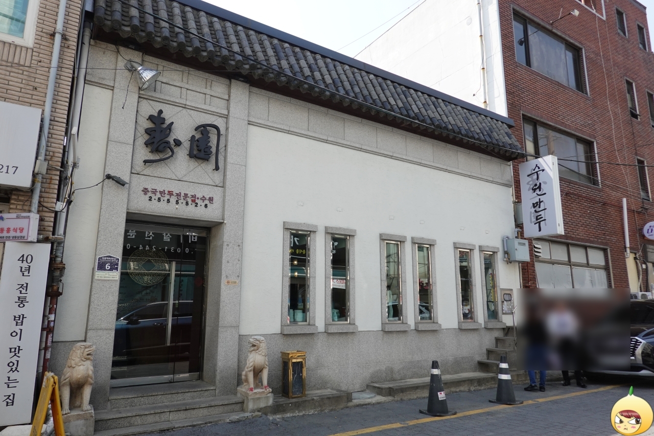 수원만두는 화성행궁 근처에 있는 화교가 운영하는 중국식 만두 전문점이며, 수원에서 가장 오래된 중국집이라고 다음 백과가 알려줬다. 식당 이름을 시작으로 외관에 내부 인테리어까지 위엄이 느껴진다.
