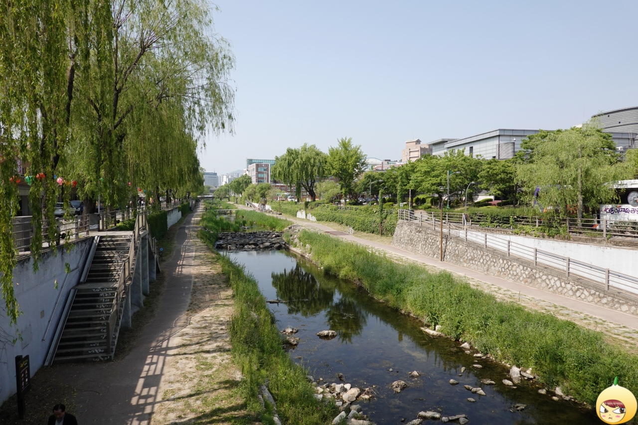 수원만두를 나와서 버스정류장으로 향하다 만난 수원천이다. 이날 최고 기온이 30도였다. 살랑살랑 봄바람은 불고 있지만, 시원하지 않고 뜨겁다. 5월은 사계절 중 봄에 속했는데, 이제는 여름이다.