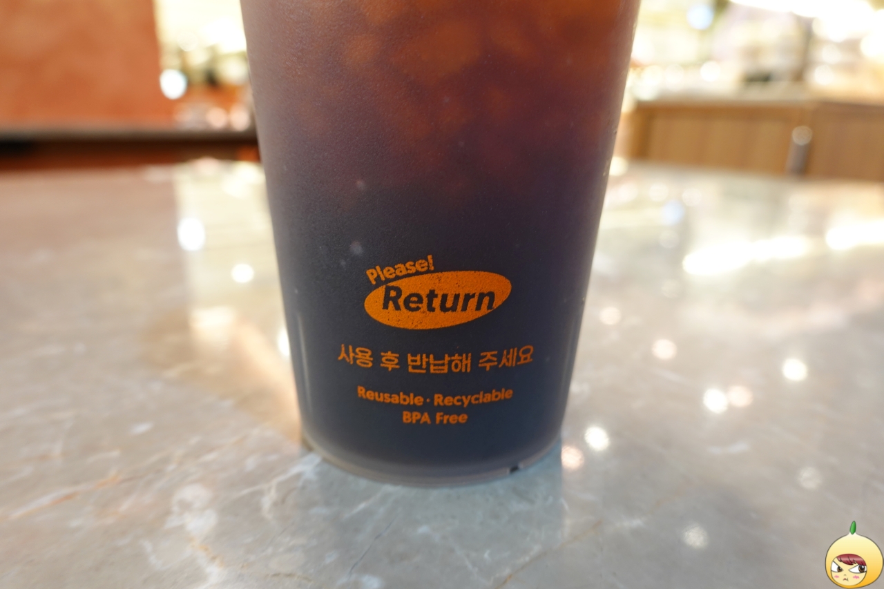 음료는 늘 그러하듯, 얼음 동동 아메리카노(4,000원)다. 맹물보다 얼음을 많이, 연하게 등 따로 요청을 하지 않았다. 일반과 다카페인 중 원두 선택이 가능한데 가격 차이가 있다. 카페인에 약한 1인이지만, 하루에 한 잔 정도는 아무거나 마셔도 잘 잔다.