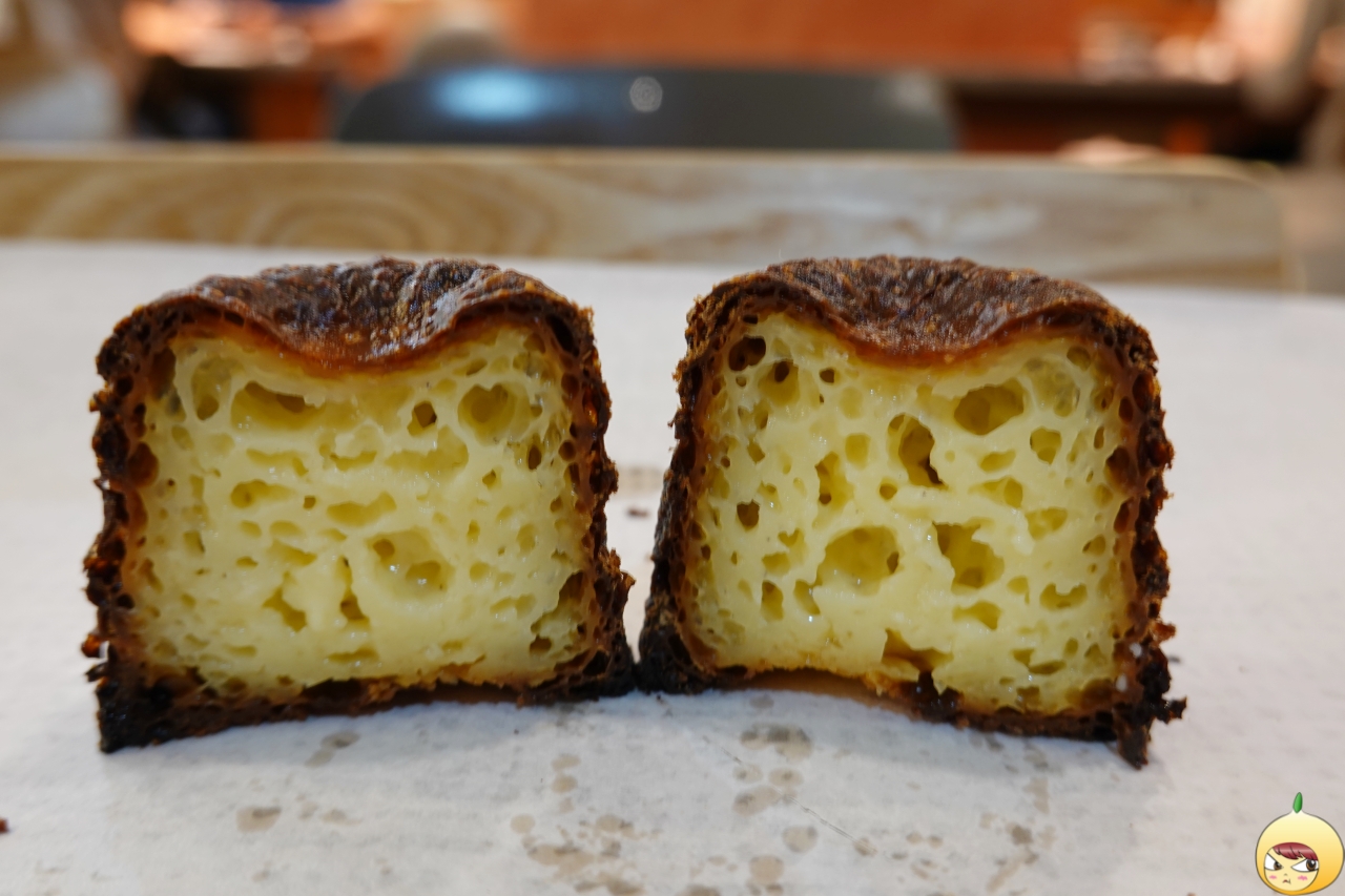 까늘레는 겉면은 카라멜화 되어 검고 두껍지만, 속은 촉촉하고 부드러운 커스터드로 되어 있다. 럼과 바닐라로 맛을 낸 프랑스 정통 디저트 과자라고 한다.