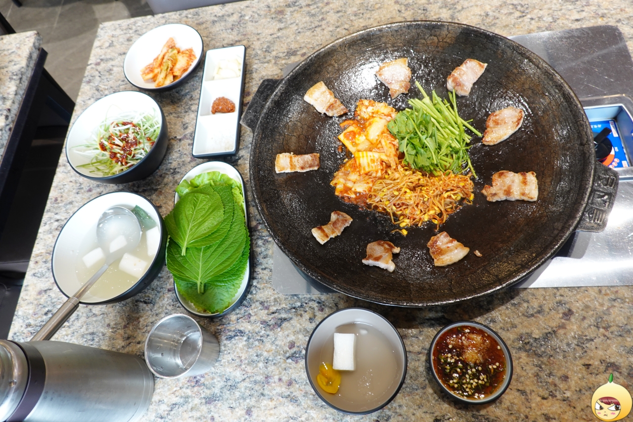 솥고집은 솥뚜껑에 초벌한 고기가 나오고, 직원이 테이블에서 구이용 반찬을 올리고 고기를 썰어준다. 그런데 초벌된 고기에 반찬 세팅까지 다 되어서 나왔다. 아무래도 바쁘지 않기도 하고, 1인분이라서 주방에서 조리를 다 한 듯 싶다. 이래저래 알아서 다 해주니 좋았다는 거, 안 비밀이다.
