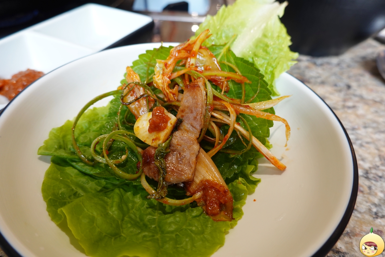 비계를 먹지 못하는 1인에게 본연의 맛은 사치일 뿐이다. 물컹거리는 식감을 싫어해 비계를 바삭하게 익혔는데도, 돼지고기는 무조건 쌈이다. 상추에 깻잎, 마늘 그리고 콩나물무침과 미나리, 김치까지 다 때려넣는다.