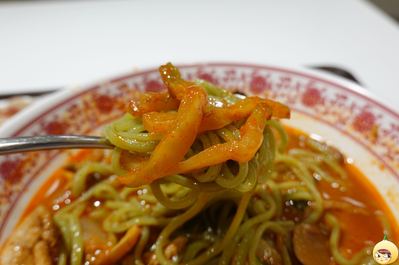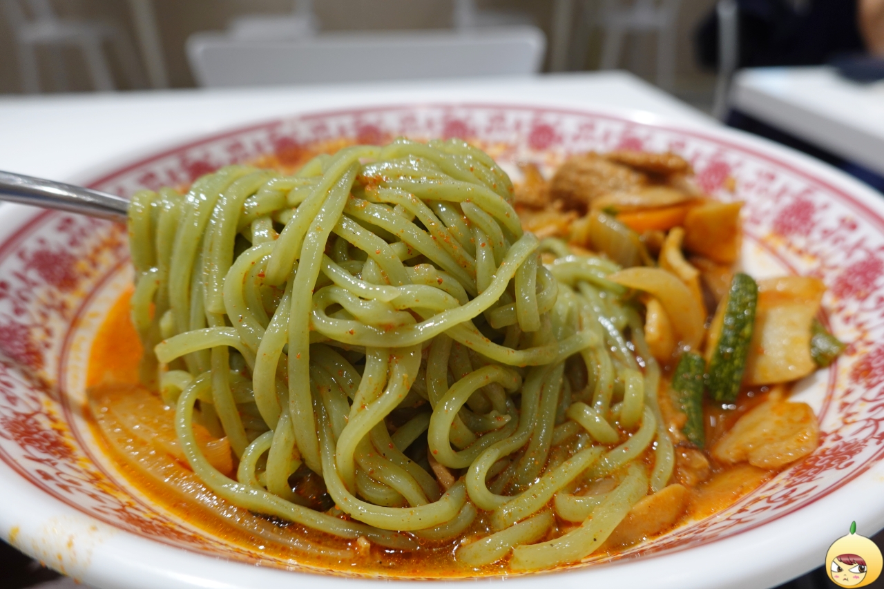 고기해물짬뽕이 아니라 해물고기짬뽕이라서 고기보다 해물 양이 더 많나 보다. 해물도 종류는 별로 없고, 대왕오징어 하나만 들어 있다. 예전에 클로렐라면이라고 초록면이 있었는데, 이건 뭘까? 시금치인 듯 싶지만 확실하게 알고싶었는데, 직원이 자리에 없어 못 물어봤다. 빨간 국물 속 초록면은 독특하고 특이해서 살짝 놀랐는 거, 안 비밀이다.