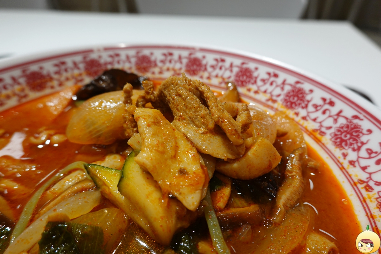 신라면보다 살짝 매울 거라고 했는데, 속이 아플 정도의 매운맛은 아니다. 근데 맵다. 깔끔함에서 한참 벗어나 국물이 텁텁하다. 칼칼에 텁텁이니 국물은 포기하고 면과 내용물에 집중하기로 했다. 파스타는 아니지만, 숟가락을 받치고 젓가락을 돌돌 돌리니 면이 착착 잘 감긴다.