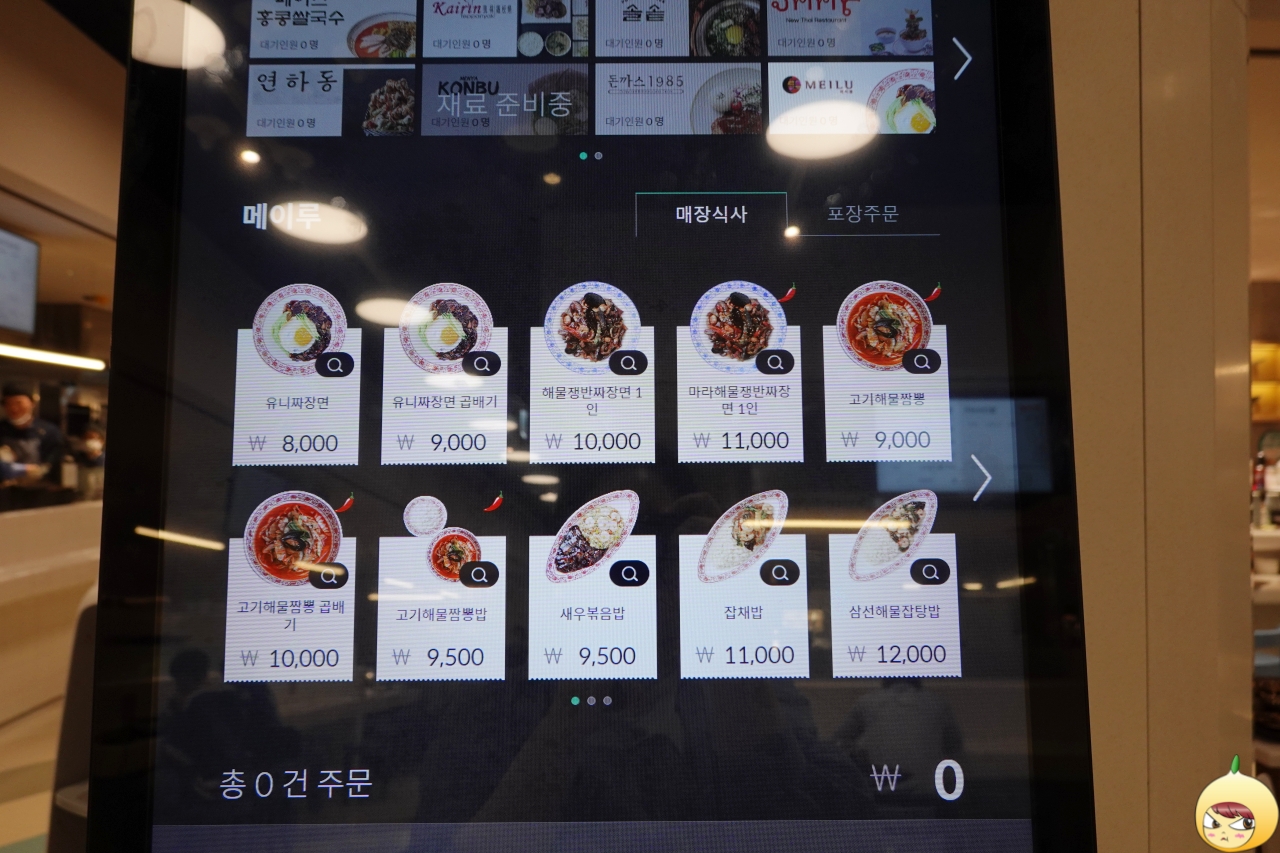 짬뽕 옆에 고추 표시가 되어 있어, 주문을 하다 멈추고 주방으로 갔다. 매운맛에 약한 1인이라 확인이 필요하기 때문이다. 직원 왈, 신라면보다는 매운데 불닭볶음면 수준은 아닙니다. 조금 걱정은 되지만, 속이 아플 정도로 맵지 않을 듯 싶다. 다시 키오스크로 가서 주문을 했다.