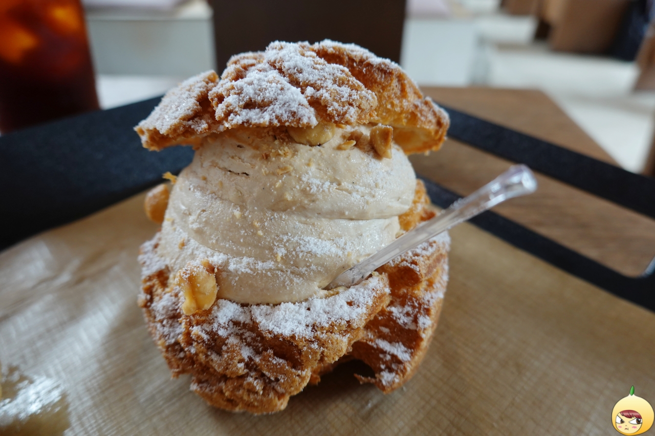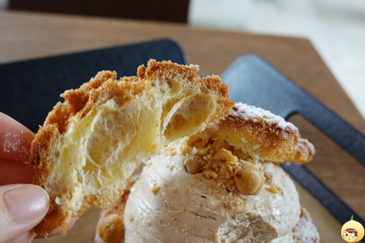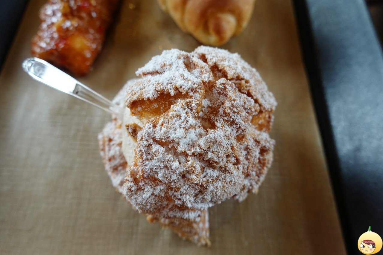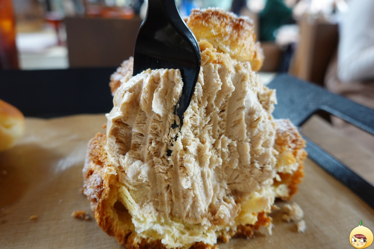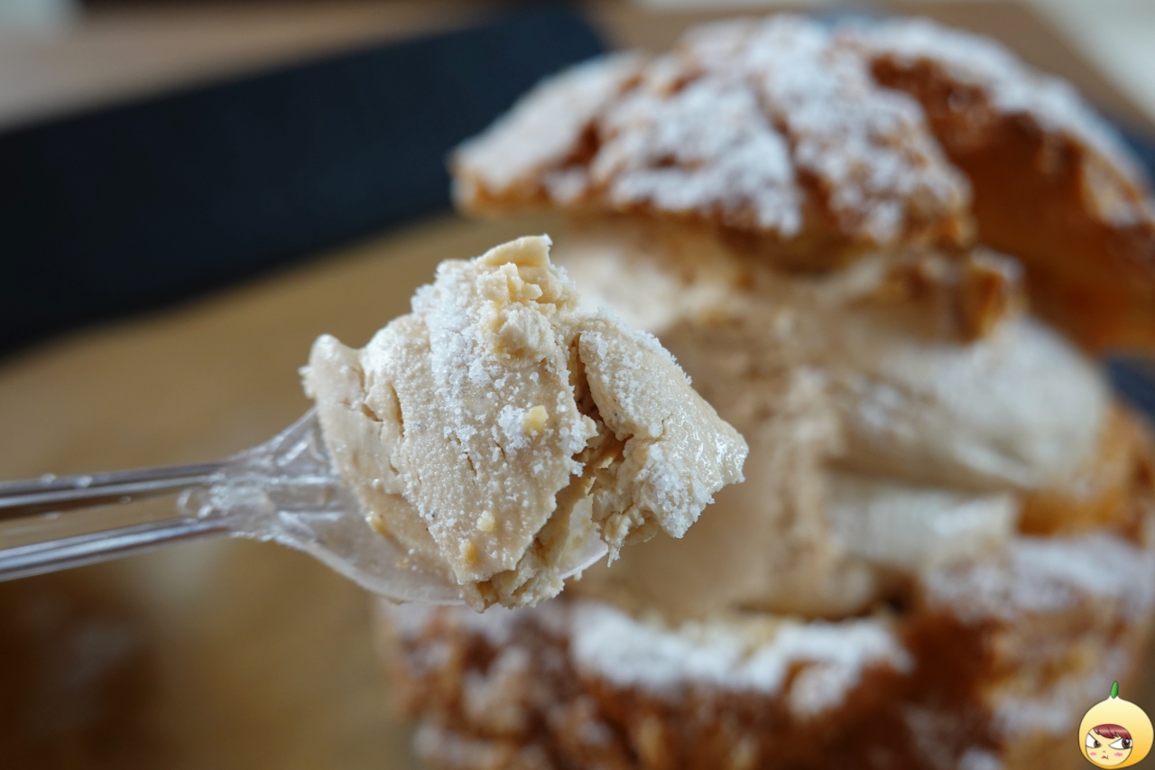 헤이즐넛슈슈(5,500원)는 새로 나온 빵인 듯 싶어 골랐다. 헤이즐넛, 오틀리 오트크림, 카라멜 그리고 커스터드가 들어있다고 안내문에 나와있다. 처음에는 땅콩크림인 줄 알았는데, 크림보다 빵이 더 달다. 스푼이 포함되어 있어 신기하다 싶었는데, 크림이 떠먹는 아이스크림 같다.
