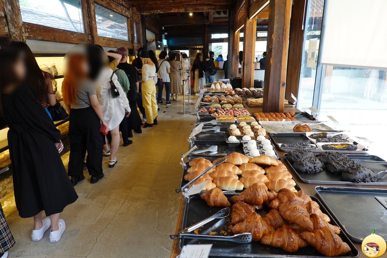 그 다음, 빵이 있는 공간으로 가서 먹고 싶은 빵과 음료를 주문하면 된다. 자리를 잡았으니 더이상의 기다림은 없을 줄 알았다. 그런데 빵이 있는 진열대부터 음료를 주문하는 공간까지 웨이팅과의 전쟁이다. 참, 포장은 기다리지 않아도 된다.