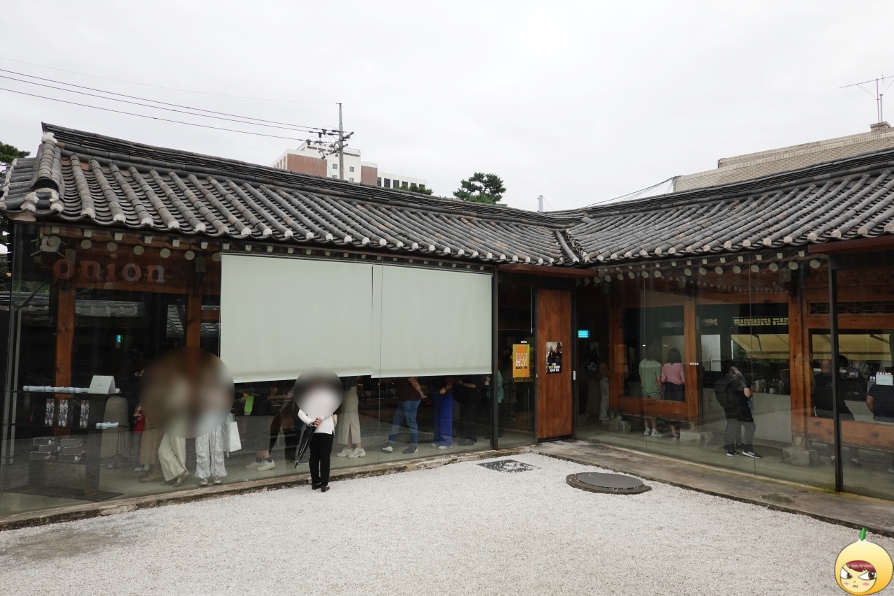 놓쳤던 입구컷, 마지막에 찰칵이다. 근처에 베이커리카페가 많은데, 어니언을 찾는 이유는 한옥 카페라는 특수성 때문이지 않을까 싶다. 그런데 아무리 훌륭하고 근사하고 좋아하는 곳이라도 웨이팅은 사절이다.