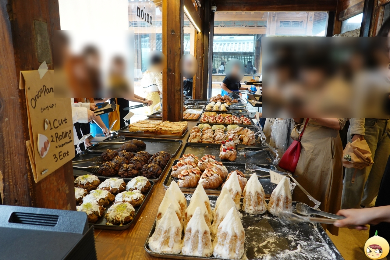 이제라도 알았으니 이탈을 하면 되는데, 대기한 시간이 아까워서 걍 기다렸다. 그렇게 40분이 흐른 후, 대기줄에서 나와 안으로 들어왔다. 베이커리카페이니 빵과 음료를 먼저 선택해야 하지만, 어니언은 자리부터 잡아야 한다.