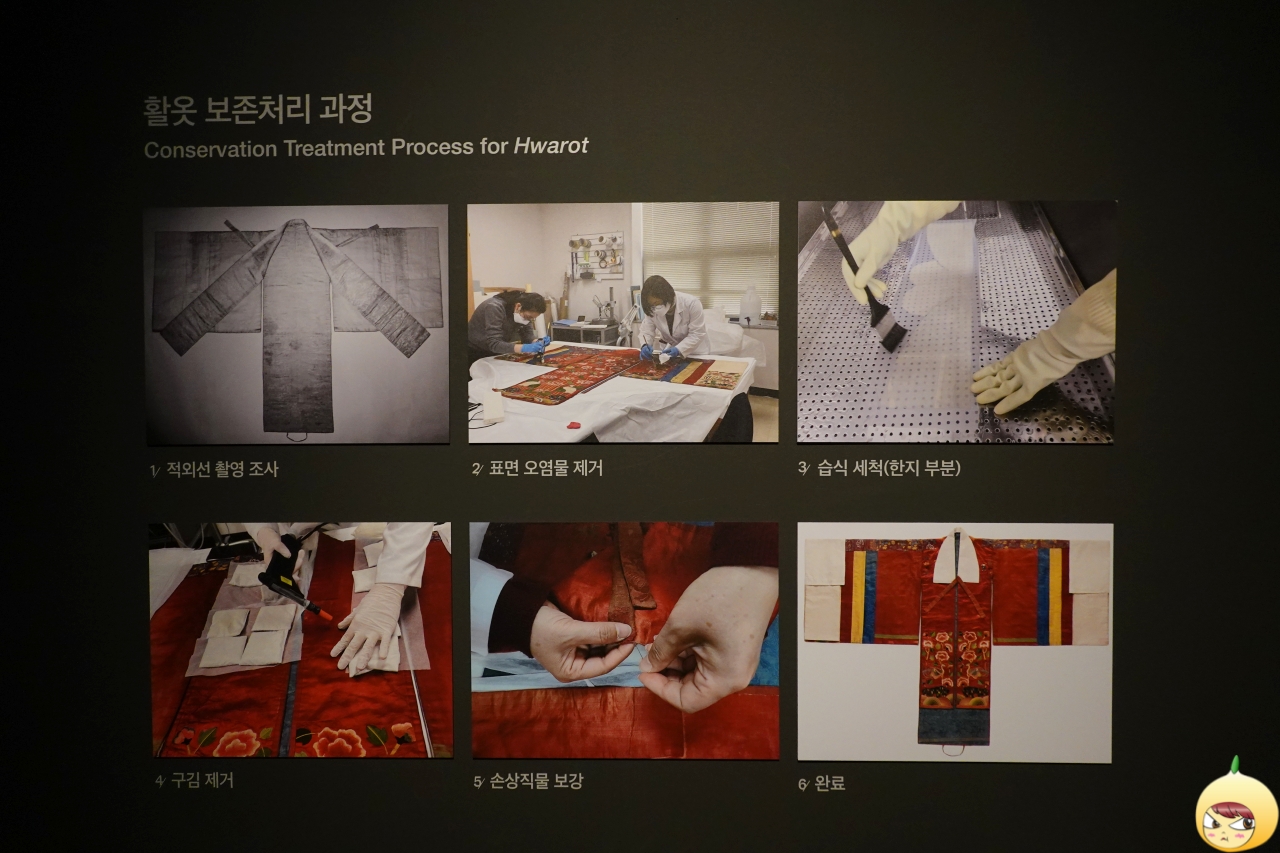 현재 남아 있는 활옷은 약 50여 점으로 국내에 30여 점, 해외에 20여 점이 있다. 미국 LACMA 소장 활옷의 복원처리는 방탄소년단 RM의 후원이 계기가 되었고, 덕분에 이렇게 전시까지 이어지게 됐다고 한다. 우리 활옷이지만 미국 로스앤젤레스 카운티 미술관 소유라서 전시가 끝나면 미국행 비행기를 탄다.