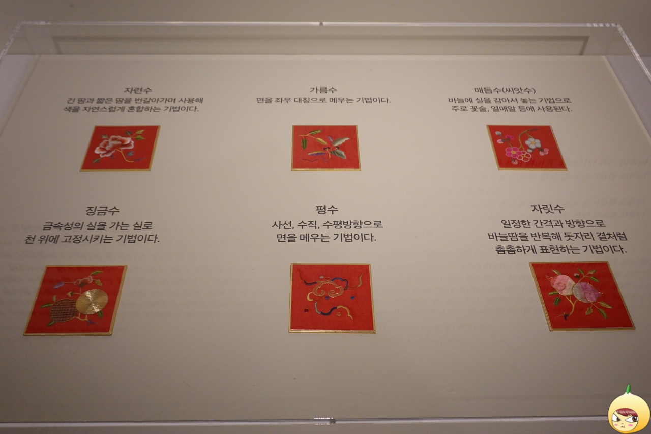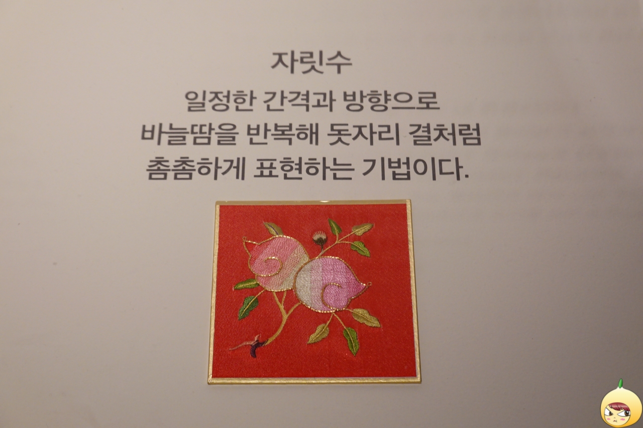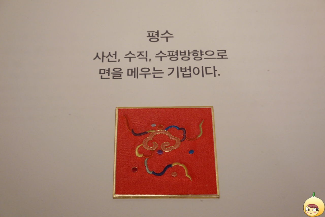 문자: 직접 글자를 수놓는 것은 글자가 가진 의미를 향한 강한 염원의 표현.
