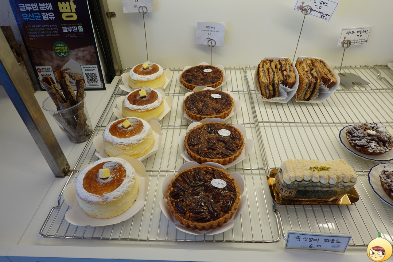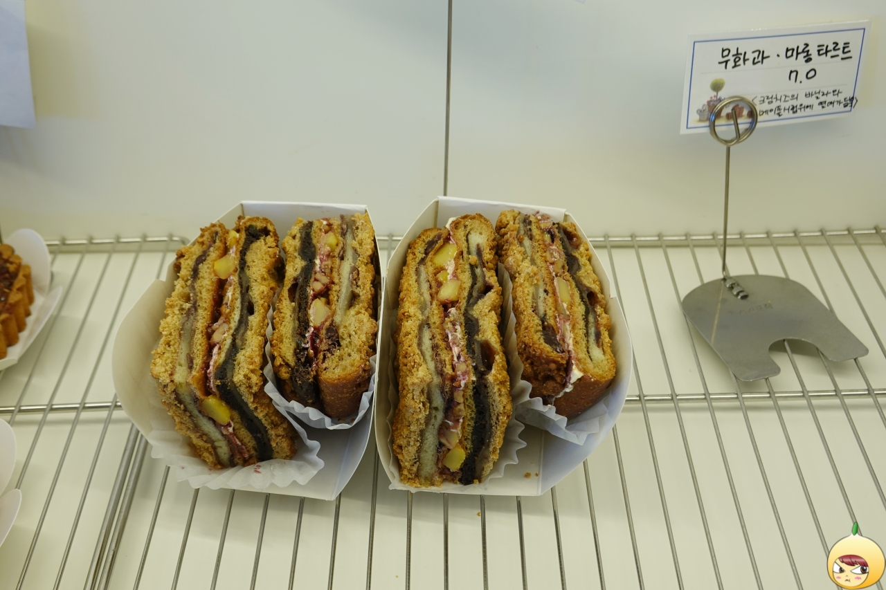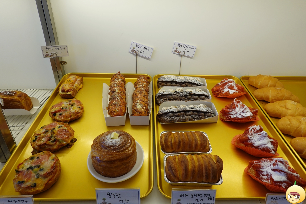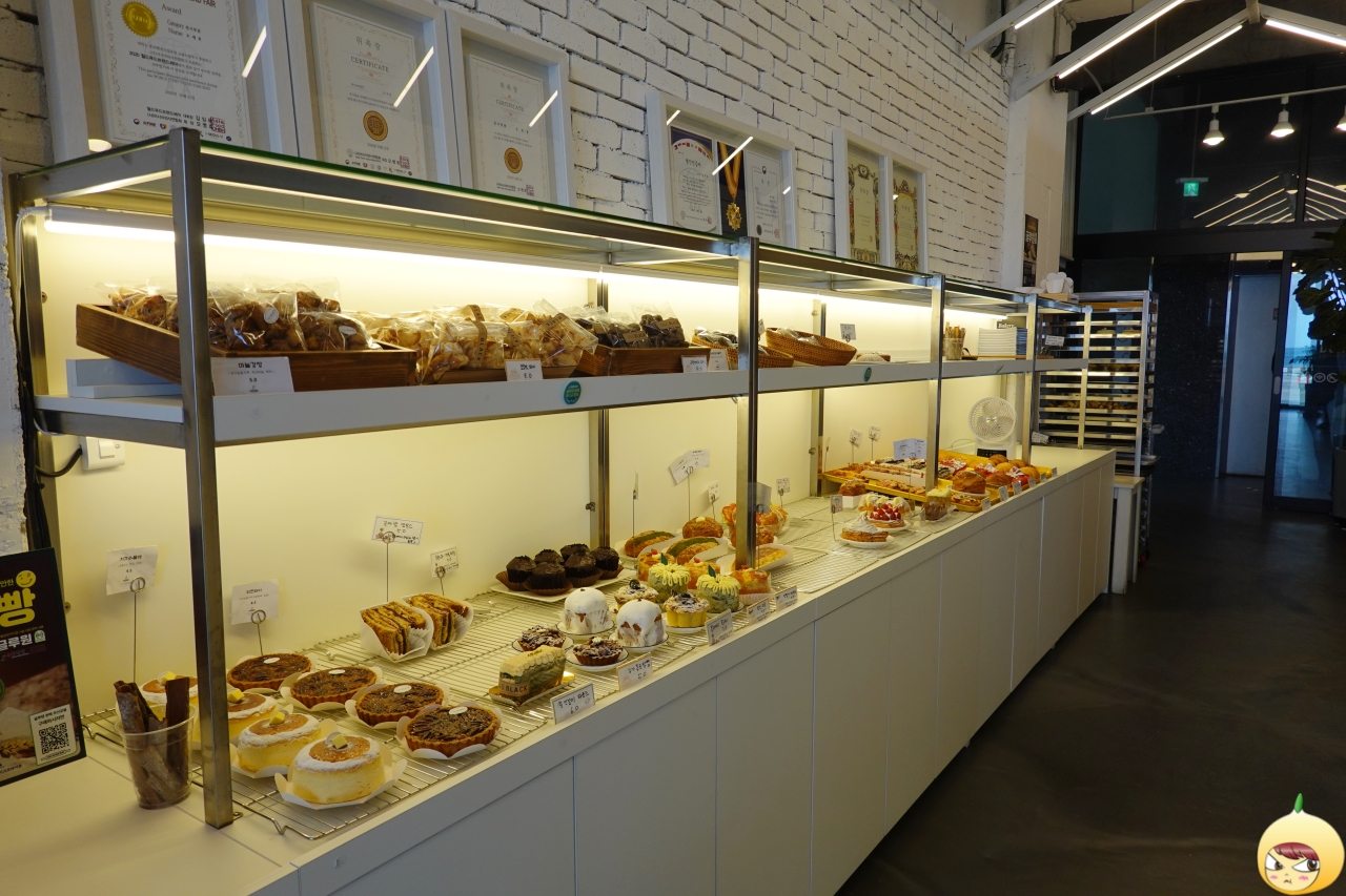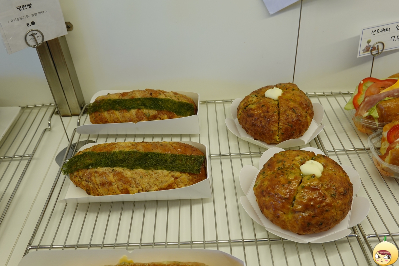 명인이 만드는 빵집 하나만으로도 충분한데, 글루텐분해유산균을 첨가해서 빵을 만든단다. 이로인해 빵은 먹은 후, 느껴지는 거북함이 덜하고 속도 편하다고 안내문에 나와있다. 그나저나 진열대가 아담하네 했는데, 소량으로 제품을 만드는지 가짓수는 꽤 많다.