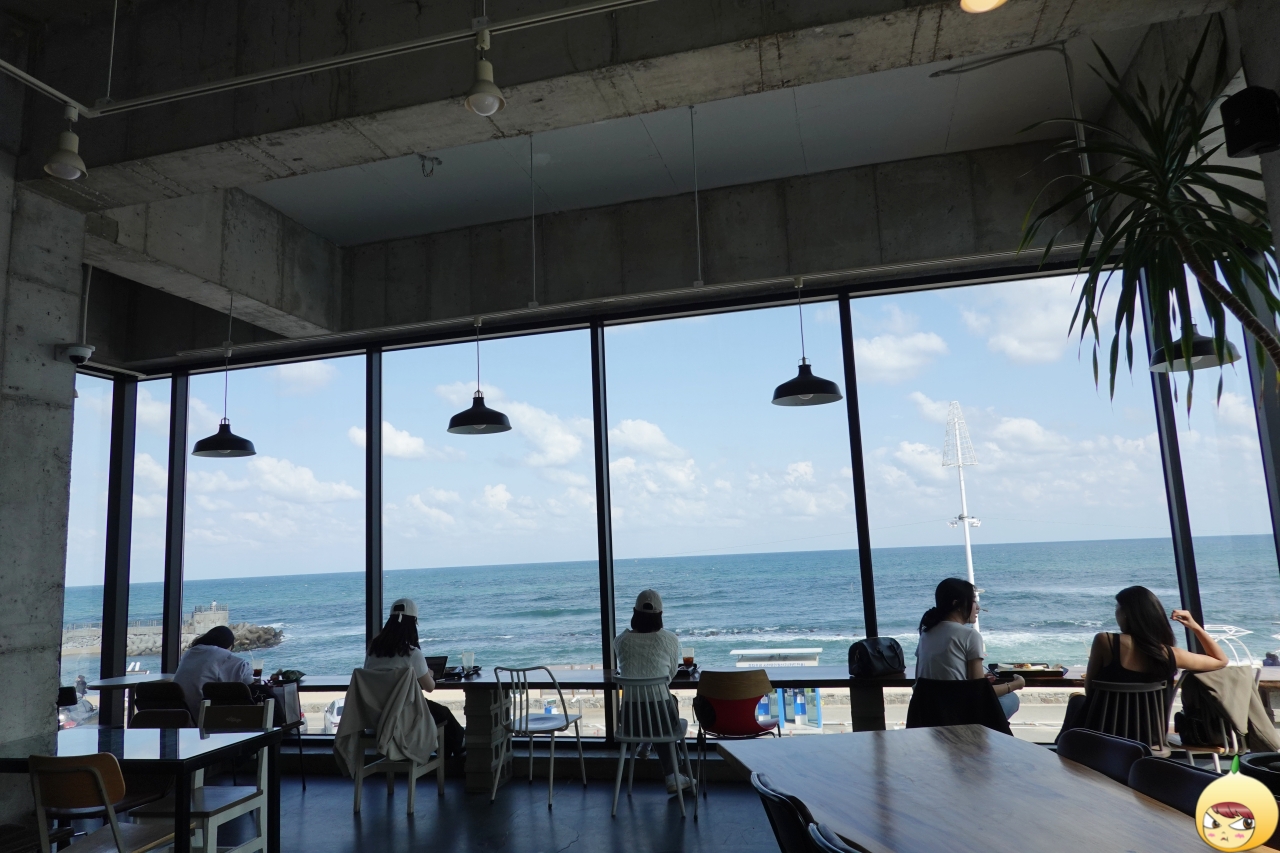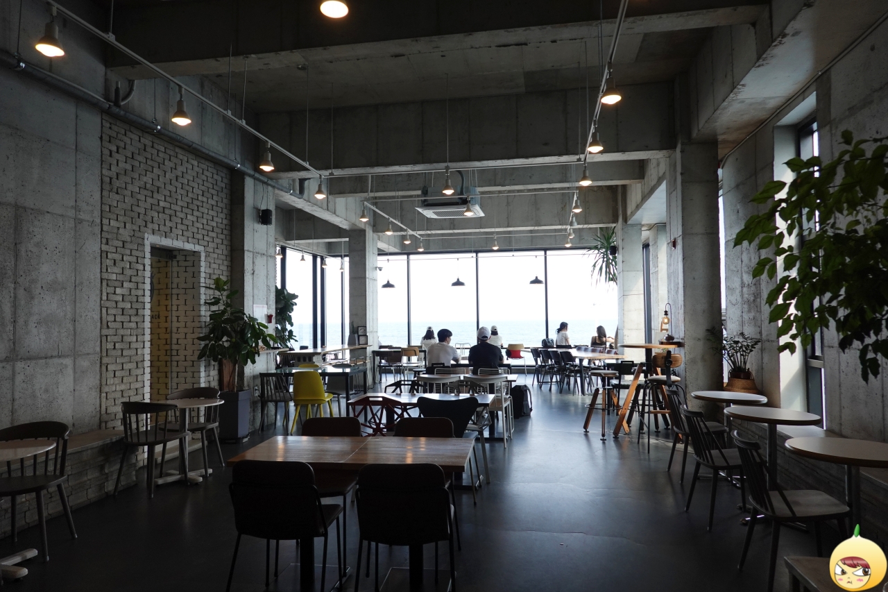 카페는 1~3층까지 있으며, 엘리베이터가 있어 굳이 계단을 이용하지 않아도 된다. 바닷가 옆 카페답게 바다전망 하나는 끝내준다. 분위기가 한적하다고 해야 맞는데, 창가석만은 예외다. 빈자리가 있어도 앉기에 거시기(?) 했는데, 이내 자리가 생겨서 이동을 했다. 주말이라면 상상도 할 수 없을 텐데, 평일이라서 다행이다.
