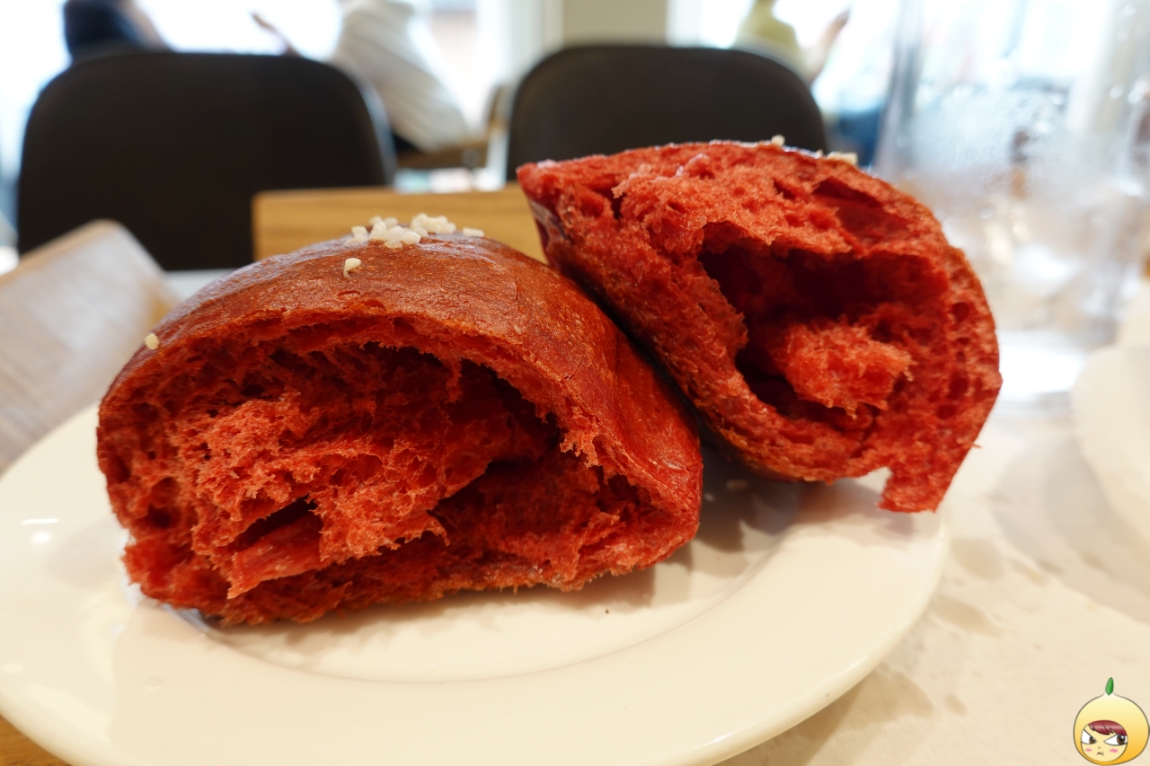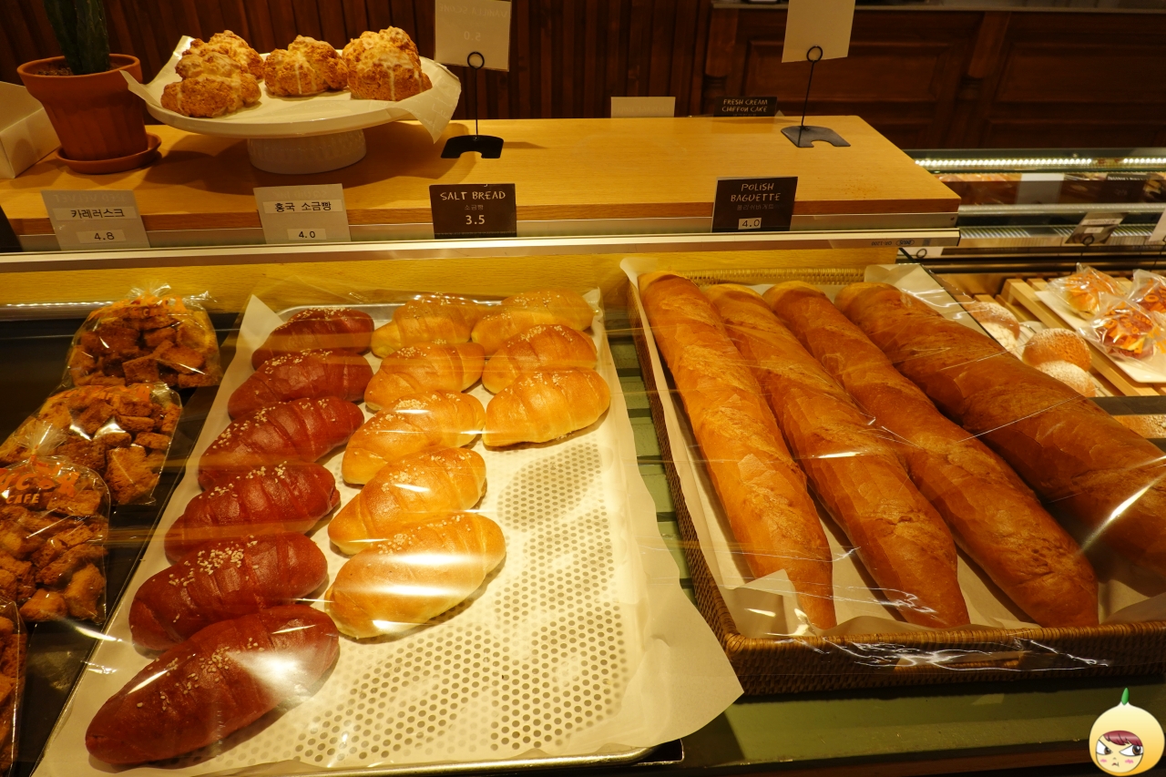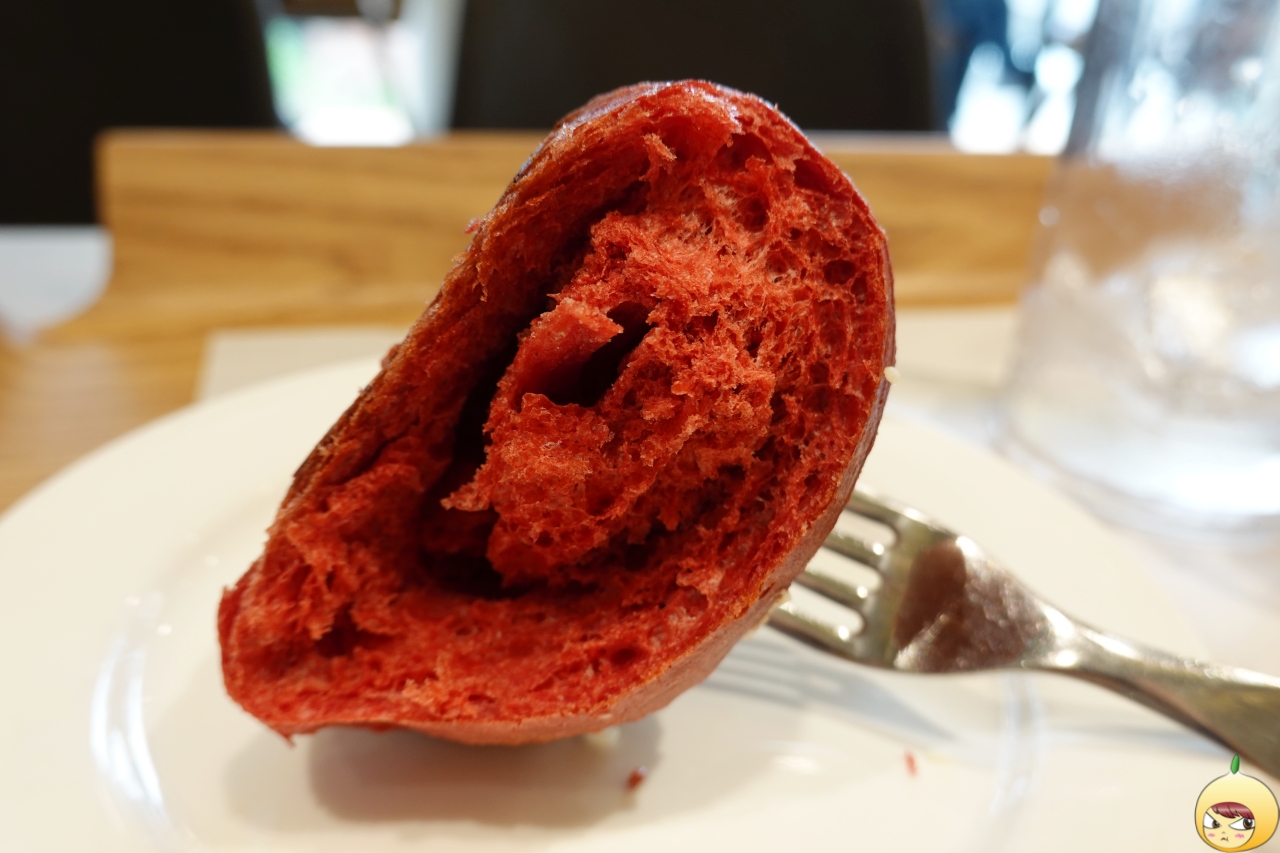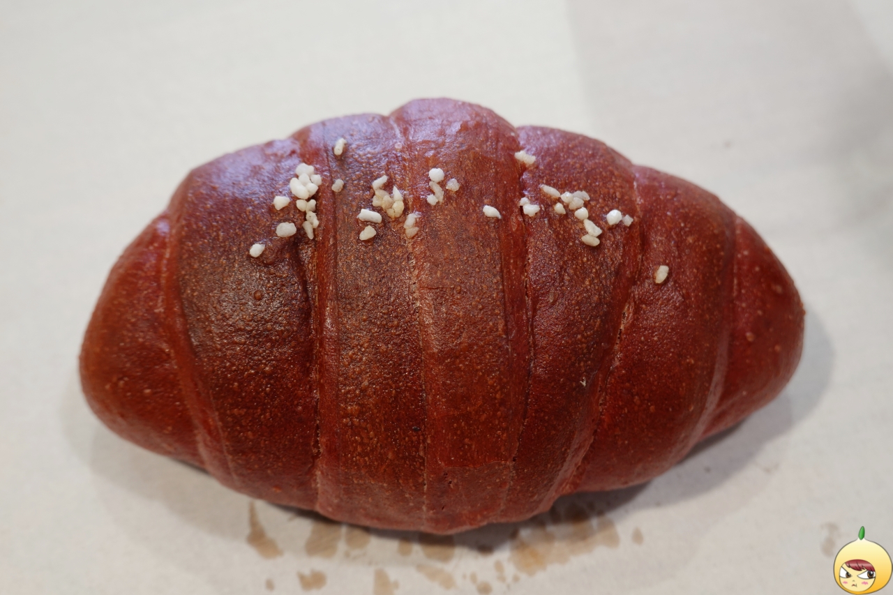 빨간 홍국쌀로 만든 소금빵은 처음이다. 때깔에 예쁜 모양새까지 아니 고를 수 없었다. 소금빵 특유의 짭조름함이 있는데, 식감이 독특하다. 아무래도 홍국쌀때문인 듯 싶은데, 빵의 쫄깃함과 떡의 쫀득함이 다 들어있다. 고로 겉바속쫀이다. 유산지에 묻어있는 건, 기름이 아니라 버터가 맞을 거다.