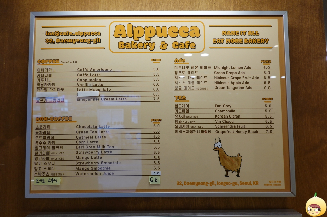 빵은 남기면 포장이 수월해서 한 입거리보다는 푸짐함을 선택했는데, 언제나 예외는 있는 법이다. 보기 좋은 떡이 먹기도 좋다고 하더니, 다채로운 타르트에 눈이 돌아갔다. 첫방문이라 고민의 고민을 거듭해, 치즈타르트와 무화과판나코타 그리고 홍국소금빵을 골랐다. 대학로가 더 편한 명륜2가에 있는 베이커리카페 알프카 대학로점이다.