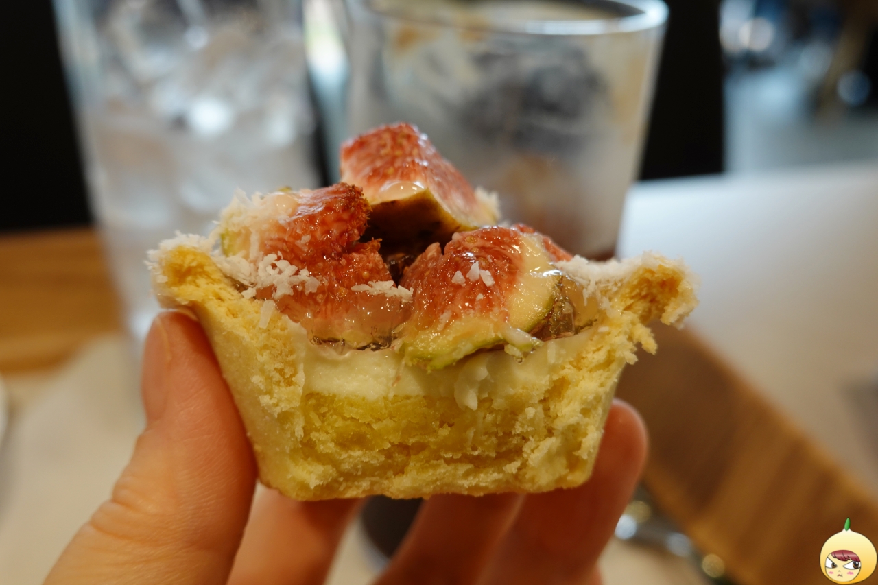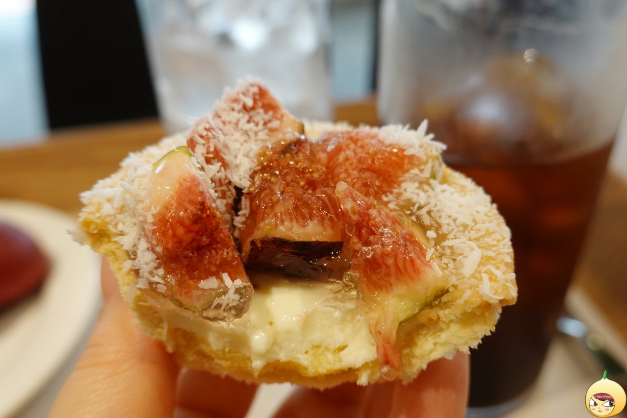 판나코타를 검색해 보니, 이탈리아식 스위트 푸딩인데 이건 푸딩이 아니다. 무화과판나코타(4,500원) 빵피는 타르트와 달리 꾸덕한 느낌의 쿠키 혹은 파이같다. 단단하지 않고 쉽게 부서지는데, 그 안에는 푸딩 느낌의 크림이 들어 있고 그 위에 생무화과가 올려져 있다.