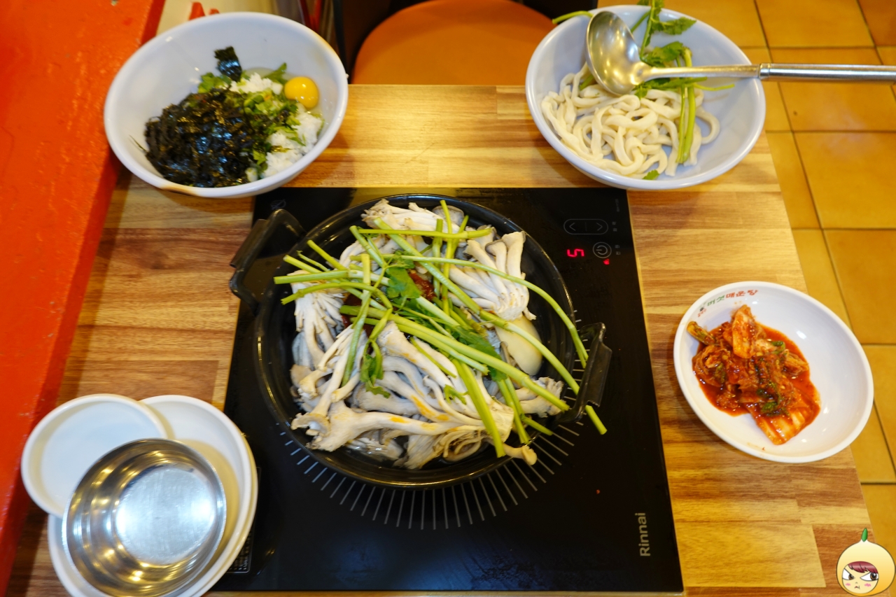 브레이크타임도 없는데 설과 추석의 제외하고 연중무휴란다. 하긴 여의도는 직장인뿐만 아니가 현지 주민도 많을 테니깐. 버섯매운탕이 13,000원이라면, 저렴하다고는 볼 수 없지만, 야채도 칼국수도 그리고 밥도 다 무한리필이다. 여기서 샤브소고기는 예외. 고기까지 주문해서 먹을까 하다가, 무한리필을 제대로 즐기고 싶어 버섯매운탕 1인분만 주문했다.
