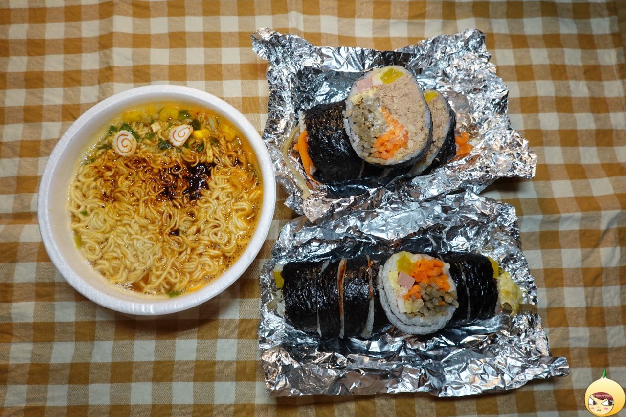 김밥에는 라면 특히 육개장 사발면이다. 집에 오는 길에 편의점에 들려 컵라면을 샀다. 촉촉한 라면이 있어 그나마 괜찮다고 하고 싶은데, 참치폭탄김밥은 그래도 퍽퍽했다. 기대하지 않았던 이공김밥이 더 좋았다는 거, 안 비밀이다.
