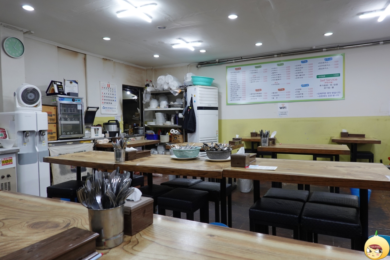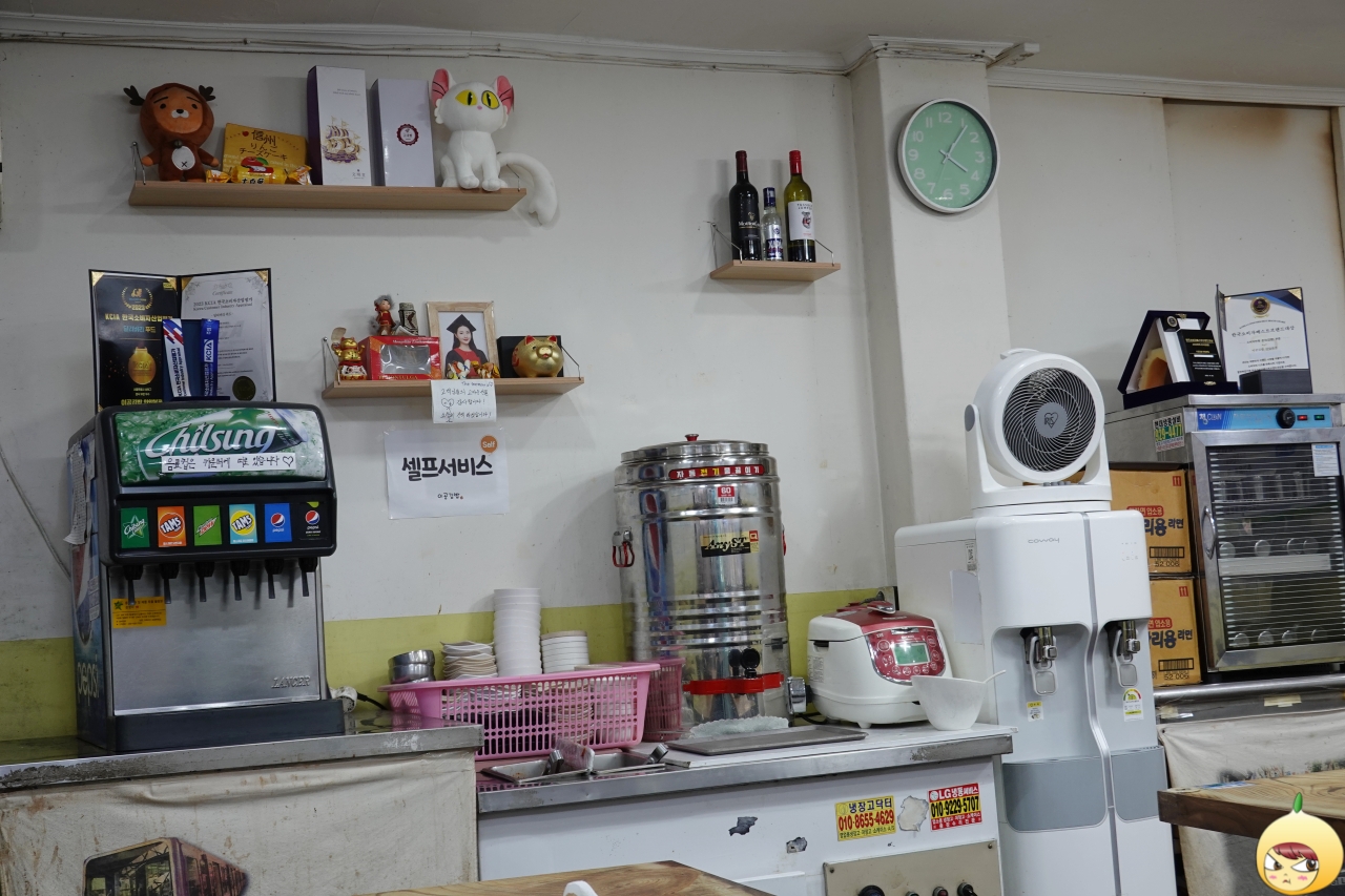노포까지는 아니지만, 세월의 흐름이 느껴지는 공간이다. 왼쪽의 작은 문은 주방이고, 김밥을 만드는 공간은 사진에는 없지만 문을 열면 오른편에 있다. 브레이크타임(오후3~4시)이 끝나고 바로 입장했으니, 이날 저녁 첫번째 고객은 나야나~