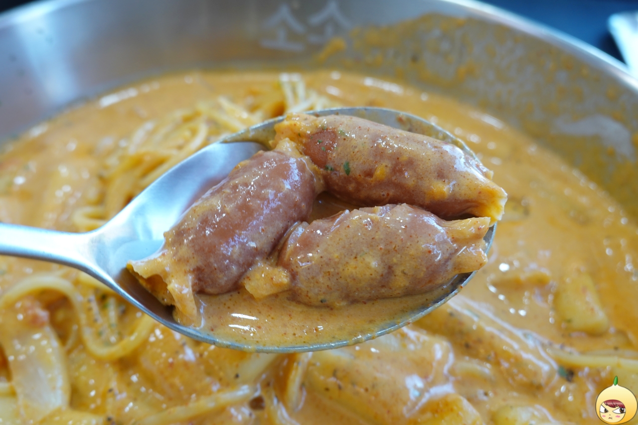 메뉴판에 이렇게 나와 있다. 'Since 2014, 원조 로제파스타떡볶이. 소시지와 양파, 파스타면을 넣고 볶아 만든 부드럽고 꾸덕한 매콤 로제떡볶이.' 2014년에 만들었다는 의미인 듯싶다. 로제떡볶이가 처음은 아니데, 파스타면이 들어있는 건 처음이다.