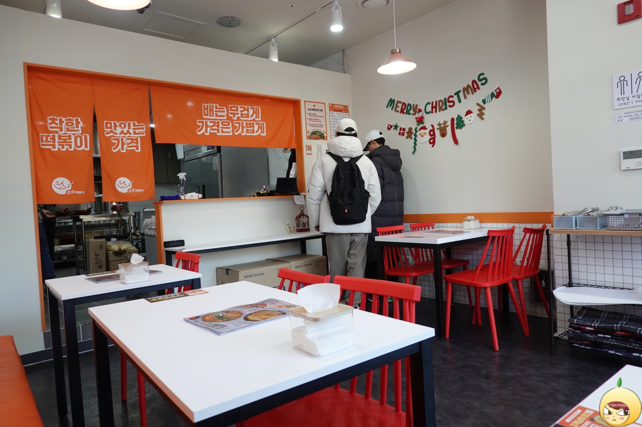 소소떡볶이 마포공덕점은 4인 테이블은 3개, 2인 테이블은 하나로 아담하다. 요런 곳은 방문보다는 배달에 더 집중을 할 테니, 매장을 크게 할 필요는 없을 거다. 포장만 되는 곳이라면 그림의 떡이었을 텐데, 그나마 먹을 수 있는 공간이 있어 참 다행이다. 왜냐하면, 배달앱을 사용하지 않는 1인이니깐.