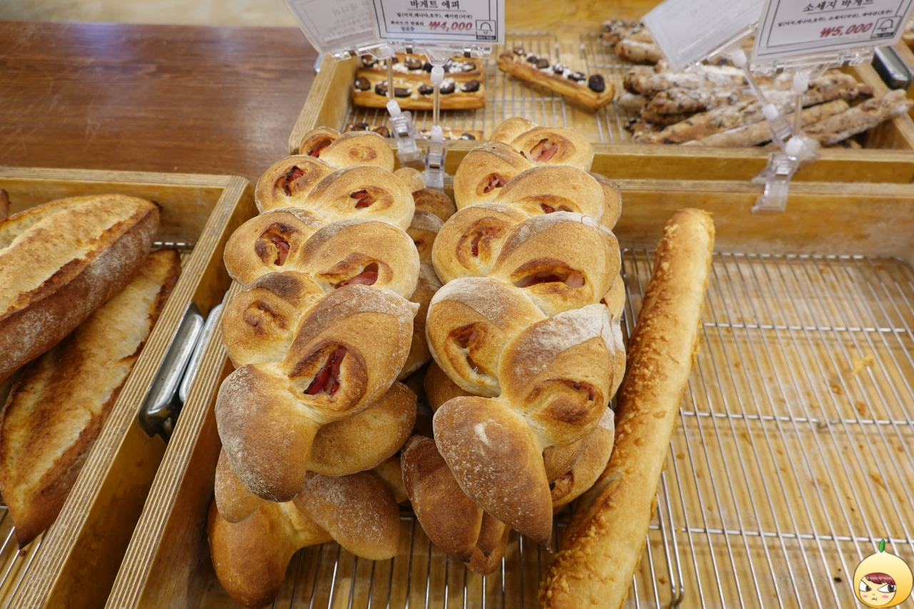 핫한 곳이다 보니, 원하는 빵을 먹으려면 12시가 되기 전에 도착해야 한다. 예상대로 일찍 오니 사람은 적고 빵은 많다. 소시지와 크랜베리 바게트를 가장 좋아하지만, 이번에는 다른 빵을 고를 거다.