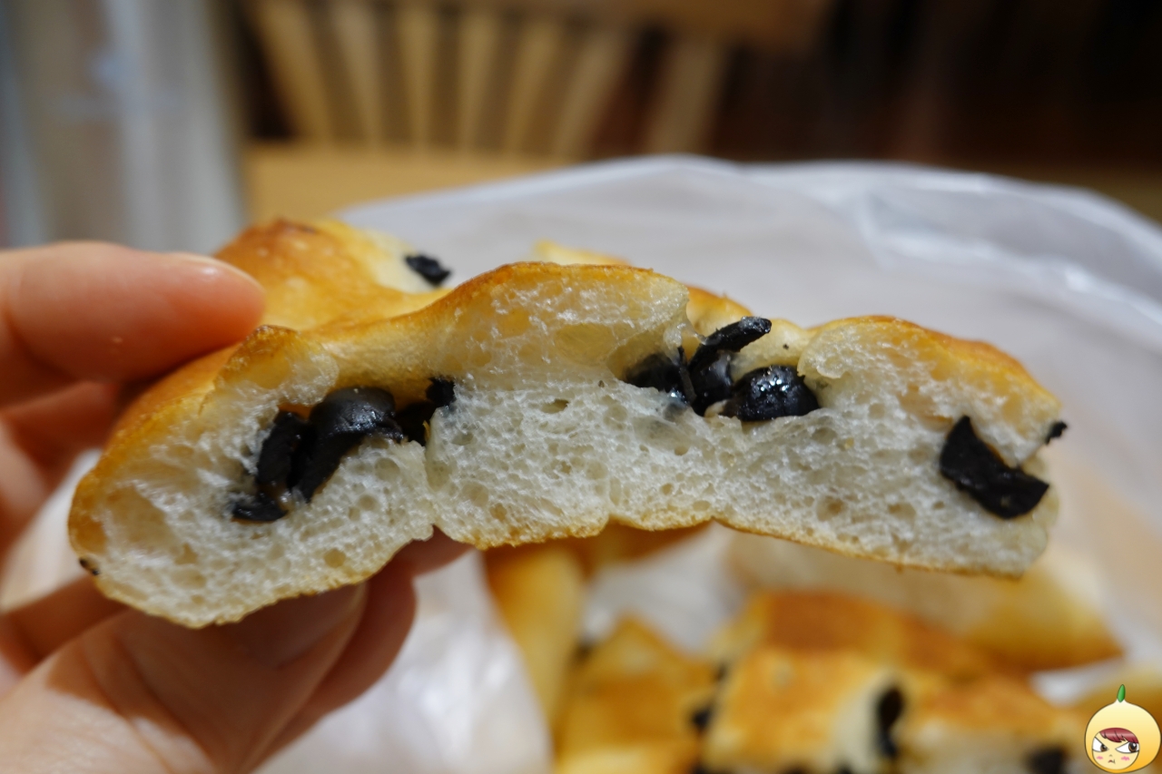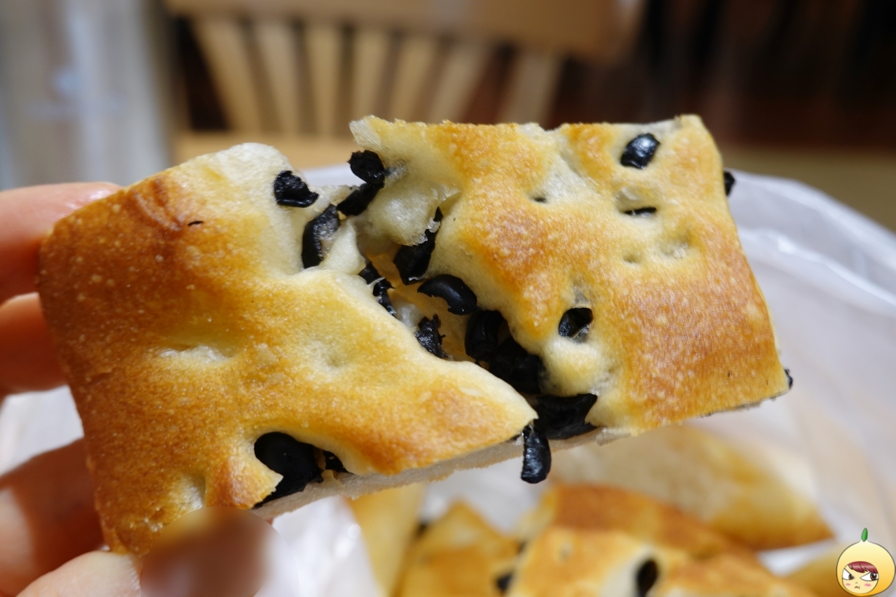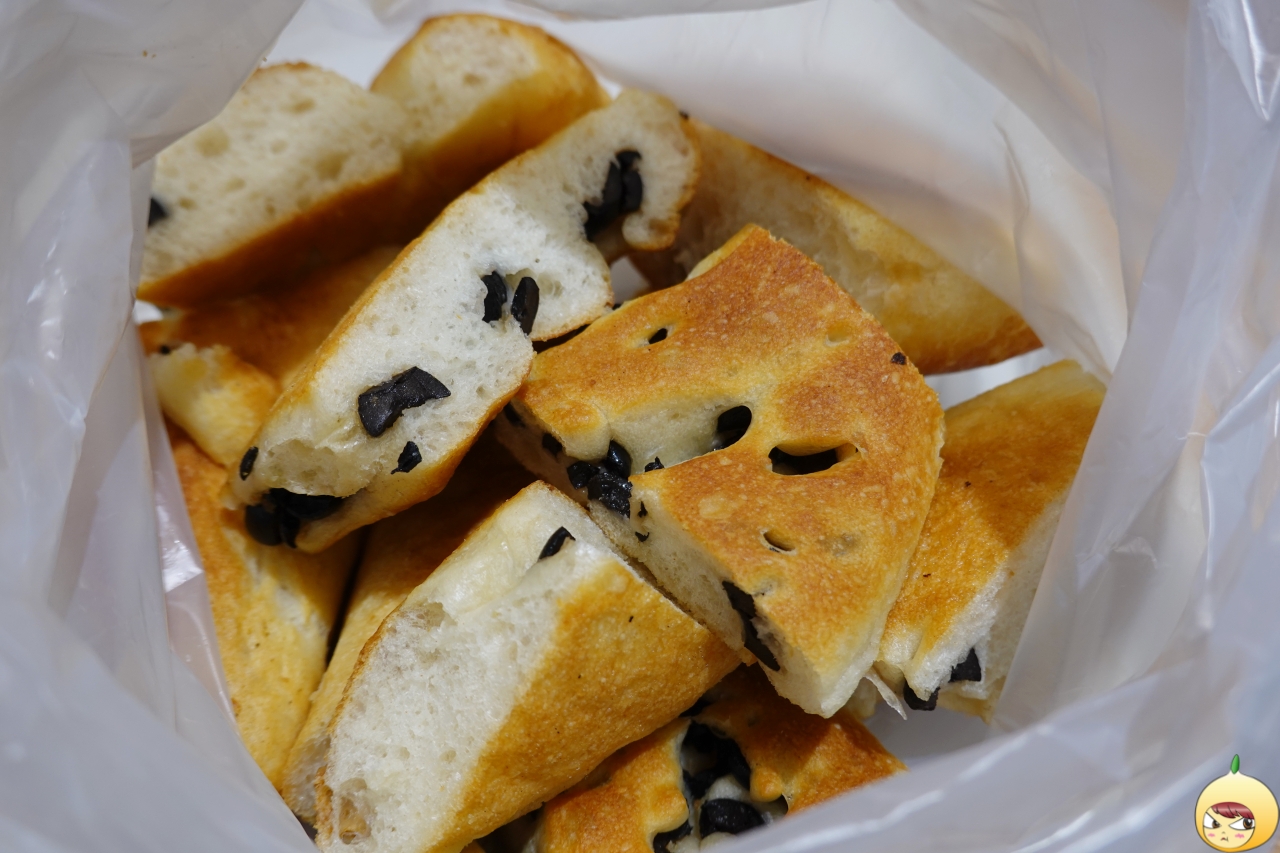 후가스에는 밀과 블랙올리브 그리고 올리브오일가 들어간다. 그 때문인지 다른 빵과 달리 오일리하지만, "윽~ 기름" 이정도는 아니다. 노릇노릇한 때깔은 고소함을 부르고, 빵은 겁나 쫄깃하다. 블랙올리브는 이래도 되나 싶을 정도로 가득 들어있다. 그런데 몰려있다 보니, 올리브 밀집지역은 겁나 짭짤하다.
