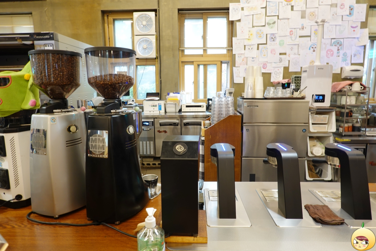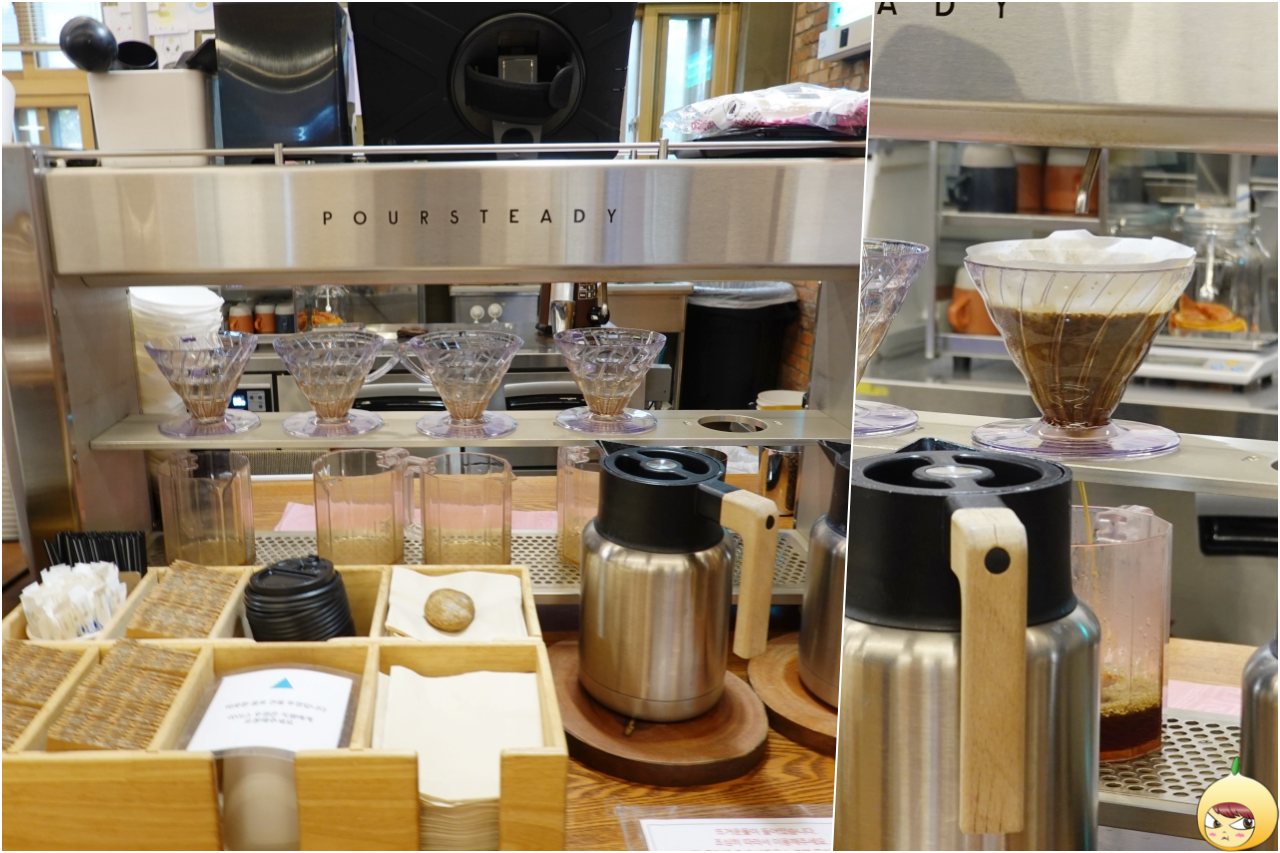 왼쪽은 압축식으로 아메리카노를 만드는 공간이고, 오른쪽은 드립커피를 만드는 공간이다. 창천동에 있는 미네르바는 주인장이 직접 내리던데, 커피리브레는 사람이 아니라 기계가 내린다. 어떤 차이가 있는지 궁금하지만, 어설픈 커피애호가라서 마셔도 모를 거다.