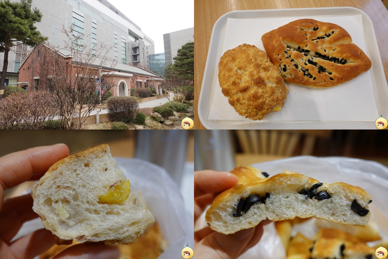늘 그러하듯 아주 자연스럽게 소시지바게트를 집으려고 했는데 했는데 빵이 없다. 벌써 솔드아웃인지 모르지만, 다른 빵을 먹으라는 누군가의 계시라 생각하고 한바퀴를 더 돌았다. 그러다 잡힌 블랙올리브가 잔뜩 들어있는 후가스가 눈에 들어왔다. 생김새가 별로라서 관심이 없었는데, 이 빵을 먹는 사람이 은근히 많다. 소밤소밤은 겉은 소보로 안은 밤빵이다. 좋아하는 녀석(?)이 다 모여있는데, 그냥 지나칠 수 없다.