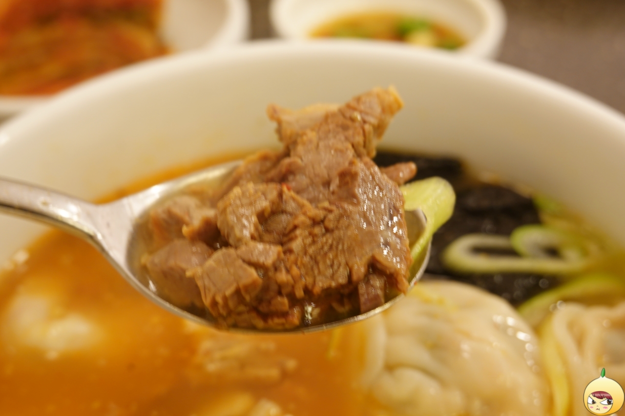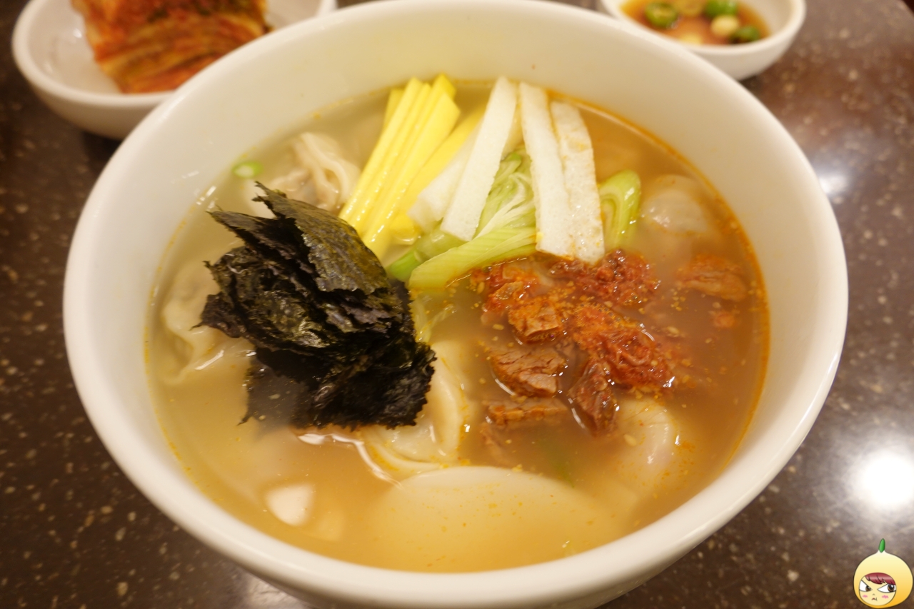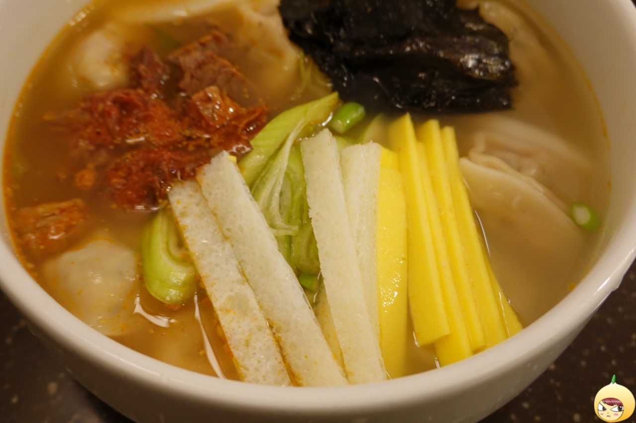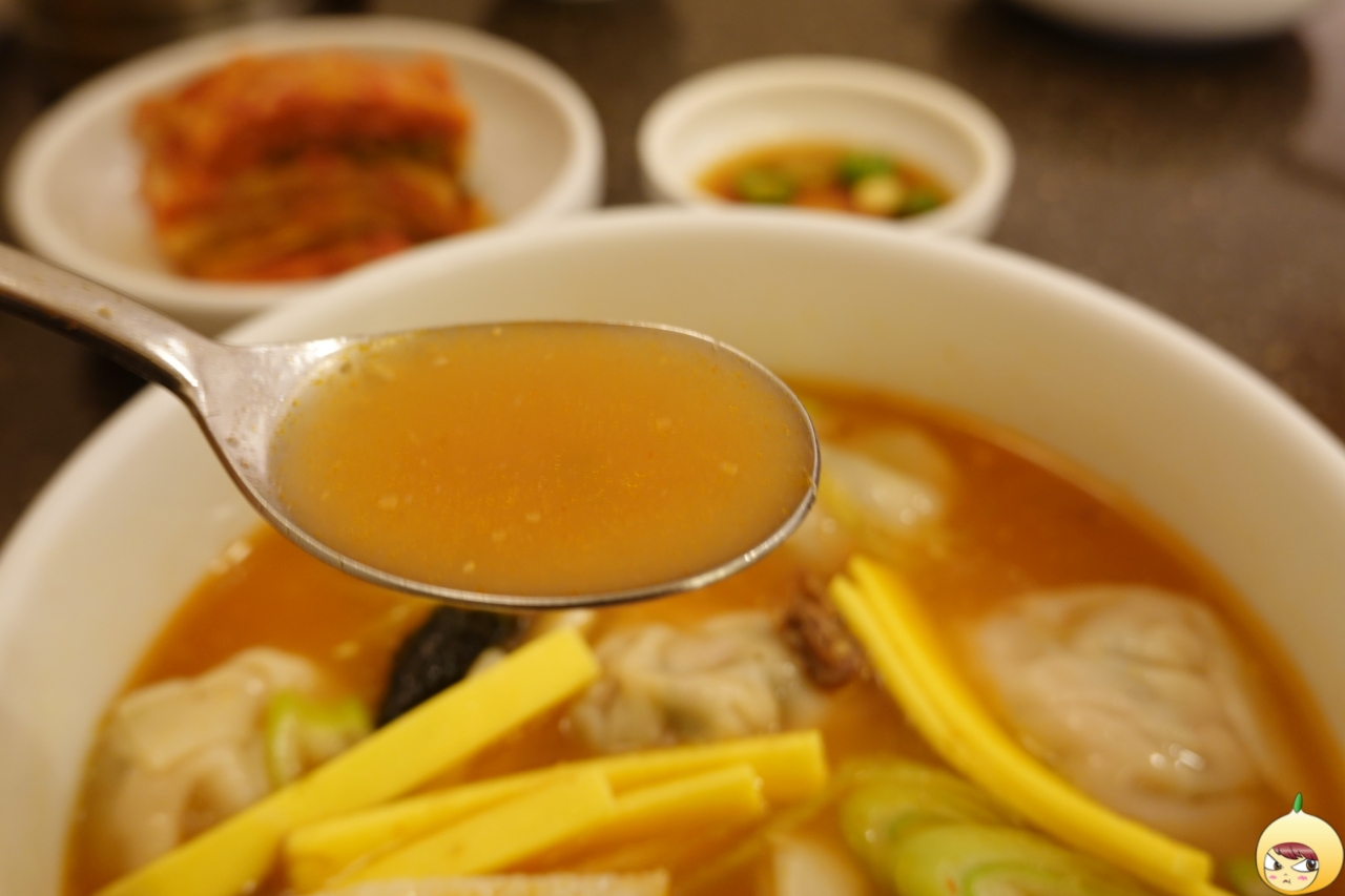 여기에 고기고명까지 겁나 고급지다. 그나저나 술국이 아니라 손만두떡국을 주문했는데 국물이 빨갛다. 혹시 잘못 나왔나 싶어 국물을 조금 먹었는데, 고기고명이 갖고 있는 양념이 풀어져서 때깔만 그럴 뿐 전혀 맵지 않다.