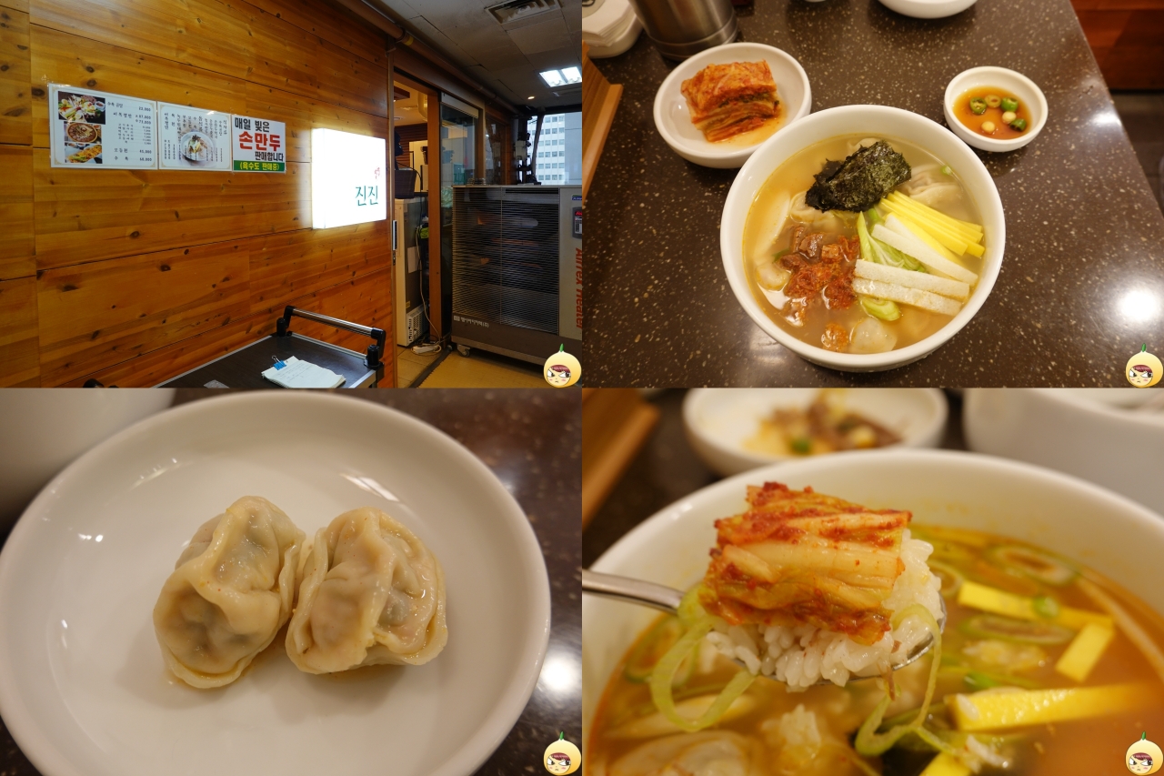 지금까지 먹었던 이북식 만두는 왕만두라 불러도 될 정도로 큼지막한 크기를 자랑했는데, 요렇게 아담한 만두는 처음이다. 작은 입을 갖고 있어도 충분히 한입만~을 할 수 있다. 그 때문인지 4~5개 정도 들어있는 다른 만둣국과 달리 8개에 떡국까지 들어있다. 영등포구 여의도동에 있는 진진만두 여의도점이다.