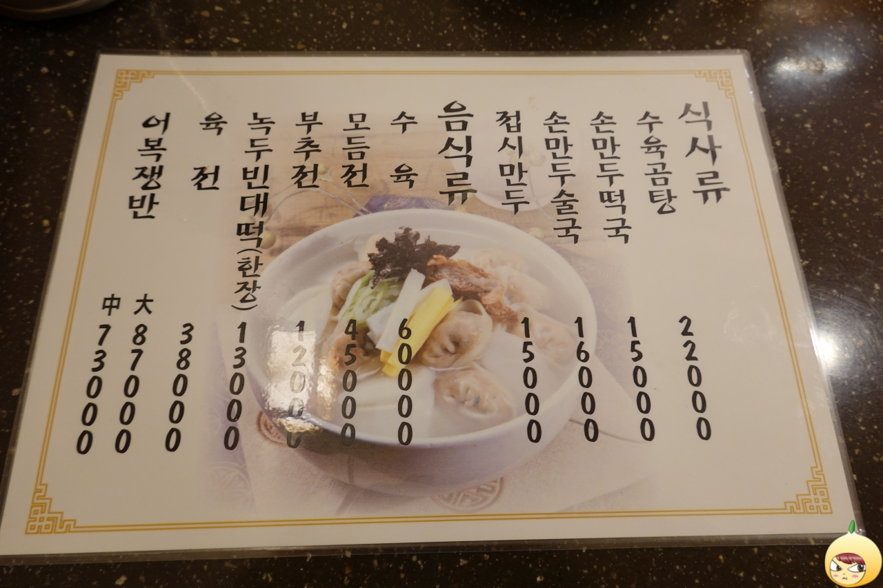 어복쟁반이랑 육전 그리고 녹두빈대떡이 무지 끌리지만, 혼밥이라서 손만두떡국(15,000원)을 주문했다. 참, 손만두술국은 칼칼하게 나오는 만둣국이라고 한다.