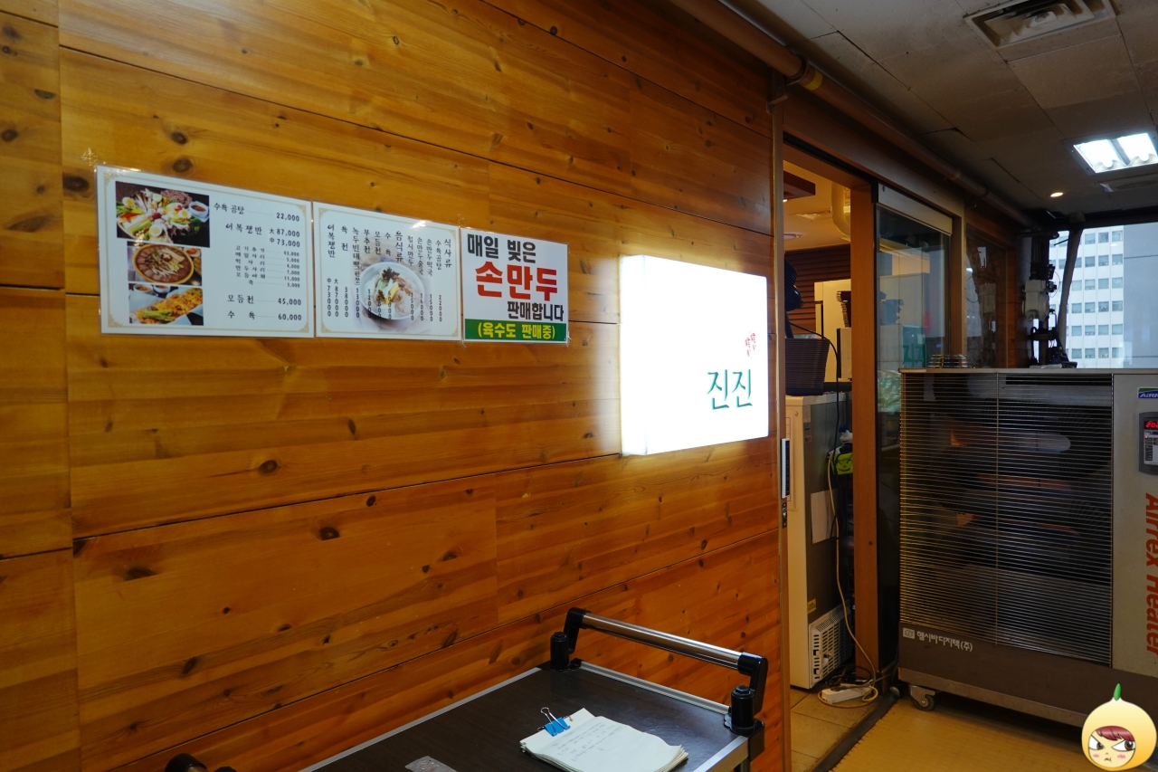 예전에는 오륜빌딩 1층에 있는 다미를 즐겨찾았다. 그때나 지금이나 가격은 사악하지만 선도와 퀄리티 하나는 끝내줬기 때문이다. 한동안 잊고 있다가 올 초 같은 건물에 있는 부흥동태탕에 오면서 추억이 되살아 났다. 한번 가야지 했는데, 다미가 아니라 3층에 있는 진진만두로 왔다. 왜냐하면, 요즘은 알콜과 그리 친하지 않기 때문이다.