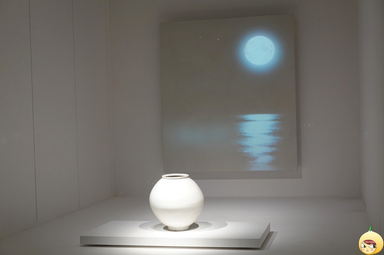 최대 지금과 높이가 거의 1:1 비율을 이루는 둥근 항아리다. 그 모습이 마치 달을 닮아 달항아리라고 불린다. 반원형 몸체를 위아래로 이어 붙여서, 몸체 가운데 접한 흔적이 있다. 좌우 대칭이 살짝 어긋난 느낌을 주지만, 자연스럽고 편안한 미감으로 조선 후기 백자의 조형성을 대표하는 작품이다.