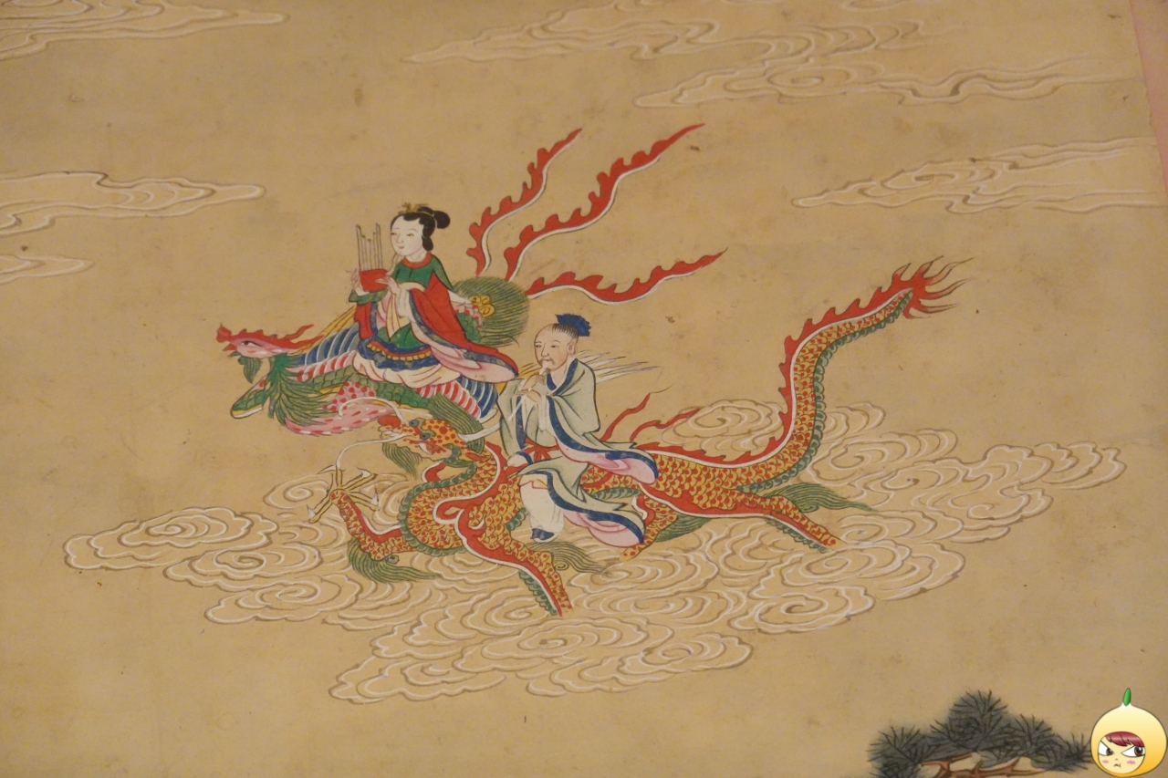 보름달과 북두칠성이 빛나는 어느 밤, 소사와 그의 부인 농옥이 각각 활룡과 봉황을 타고 하늘을 날고 있다. 소사는 진나라 사람으로 이들 부부가 부는 퉁소 소리를 듣고 봉황이 찾아들었다고 한다. 소사가 탄 용은 봉황과 달리 구름을 양탄자처럼 깔고 있다. (2021년 이건희 기증)
