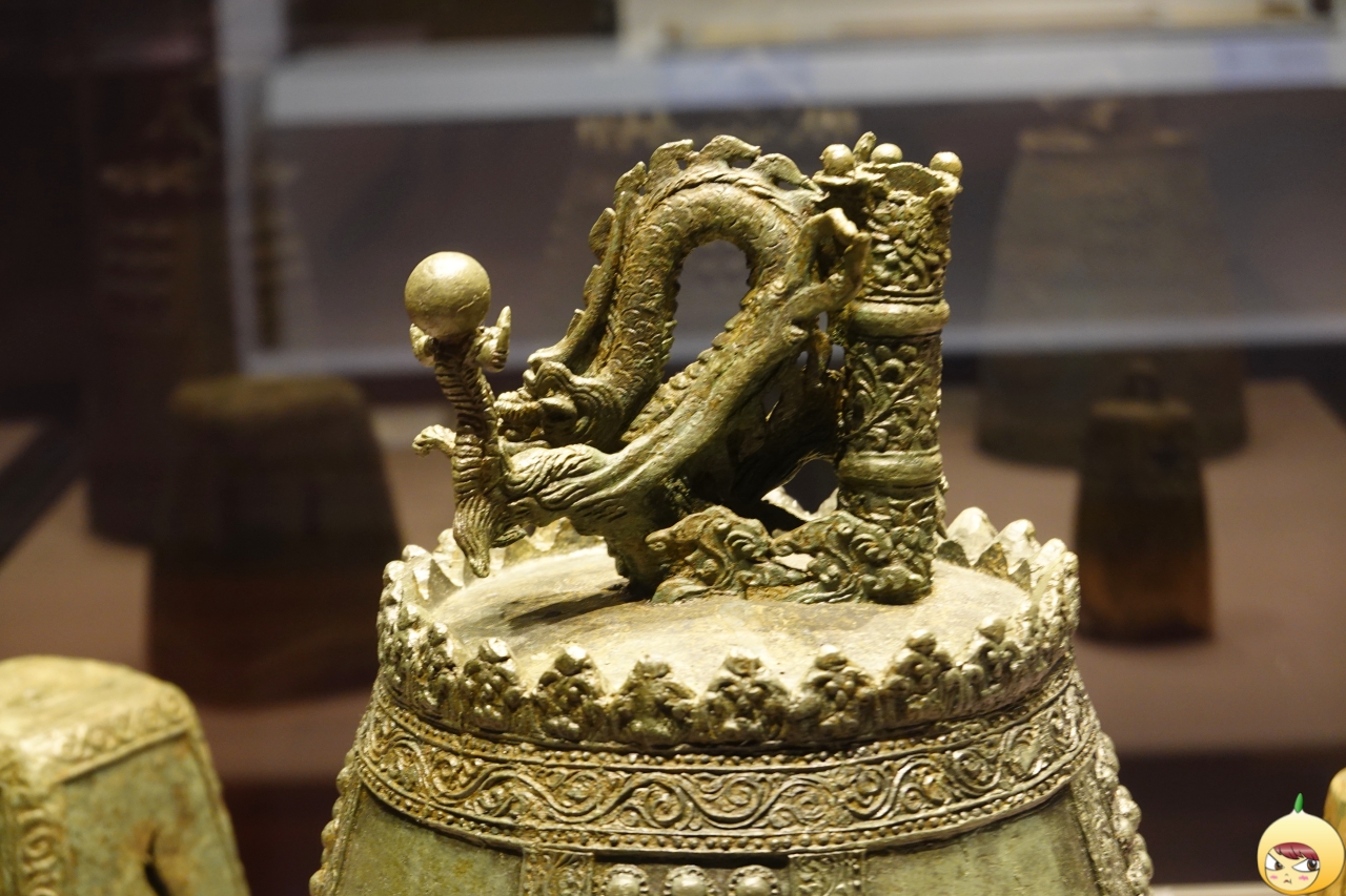 종 윗부분에 용 한 마리가 오른쪽 앞발을 바닥을 딛고 왼쪽 앞발을 치켜든 채 꿈틀대고 있다(가운데 종). 치켜든 앞발과 크게 벌린 입 속에는 여의주가 있다. 구부러진 용의 몸통은 종을 거는 고리 역할을 한다.