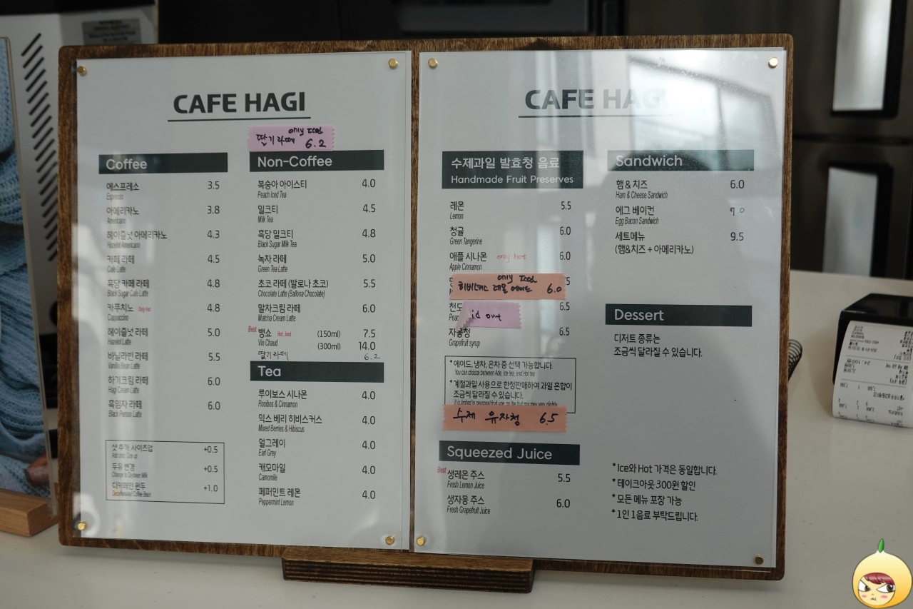 수제과일 발효청 음료가 끌리지만 늘 그러하듯 언제나 얼음 동동 아메리카노(3,800원)를 주문했다. 외국인들이 우리나라에 와서 가장 이상 혹은 신기한 점이 커피를 차갑게 마신다는 거라고 한다. 아이스 아메리카노는 전 세계 국룰인 줄 알았는데, 우리나라에서만 적용되는 룰이었다니, 우물 안 개구리가 되지 않기 위해서 핫도 즐겨 마셔야겠다. 그런데 여전히 아이스가 더 좋은 1인이다.