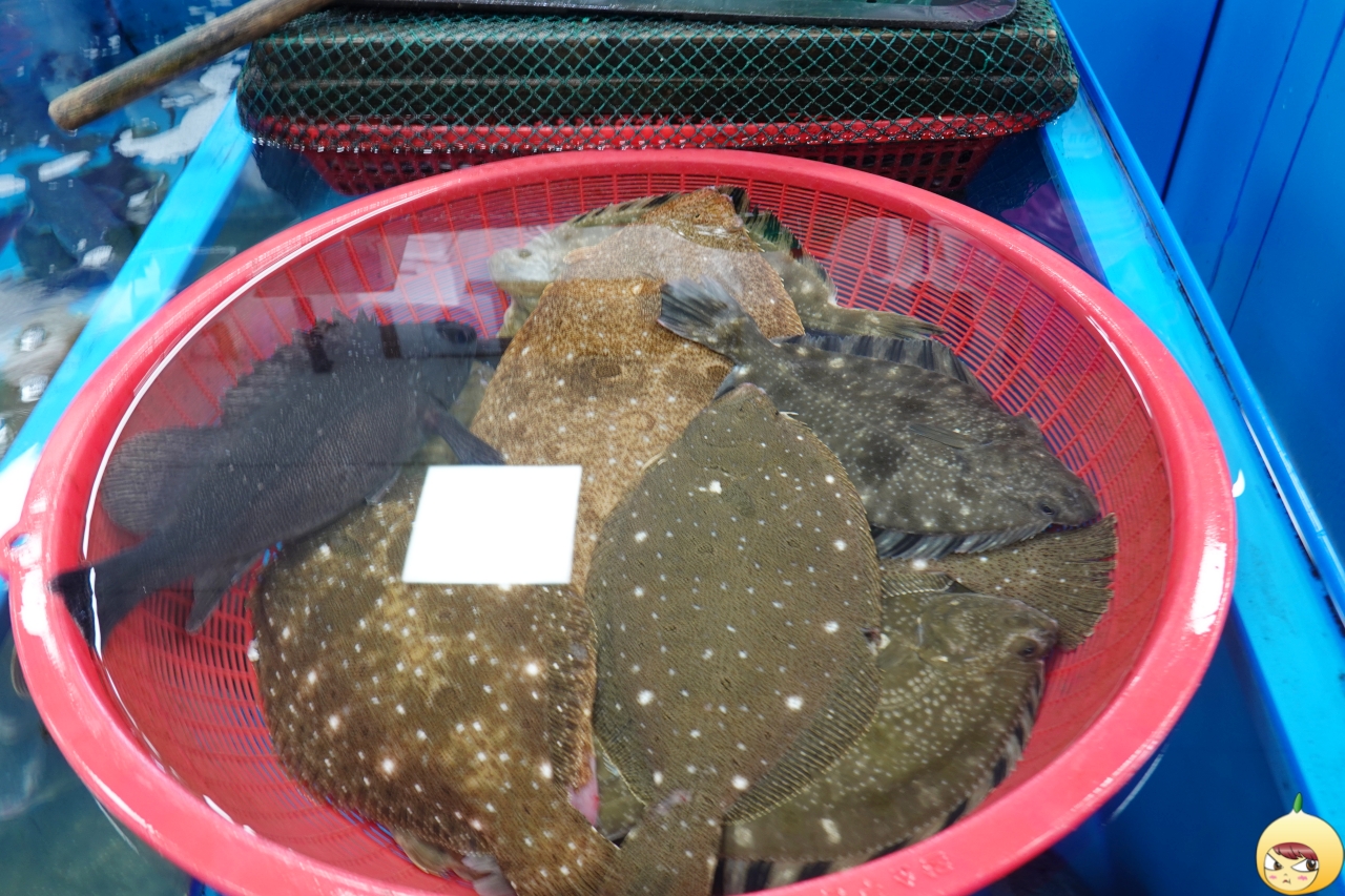 가운데 광어를 기준으로 왼쪽에 있는 꺼먼 생선은 우럭이고, 오른쪽에 있는 광어보다 좀 더 때깔이 진한 생선은 도다리이다. 도다리도 가자미과에 속하는데 총 12종이 있다고 한다. 강도다리, 도다리, 돌가자미, 문치가자미, 용가자미, 물가자미, 기름가자미, 찰가자미, 참가자미, 범가자미, 노랑가자미 그리고 줄가자미이다.