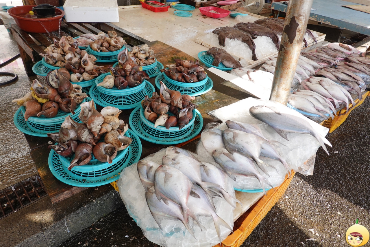 반건조 용가자미만 있는 줄 알았는데 어시장답게 생물도 있다. 용(참), 기름 가자미에 아귀도 있고 병어에 뿔(?)소라도 있다. 이렇게 시장에서 팔고 있는 복어는 독이 없는 복어일 듯싶다. 그렇지 않다면 판매조차 할 수 없을 테니깐.