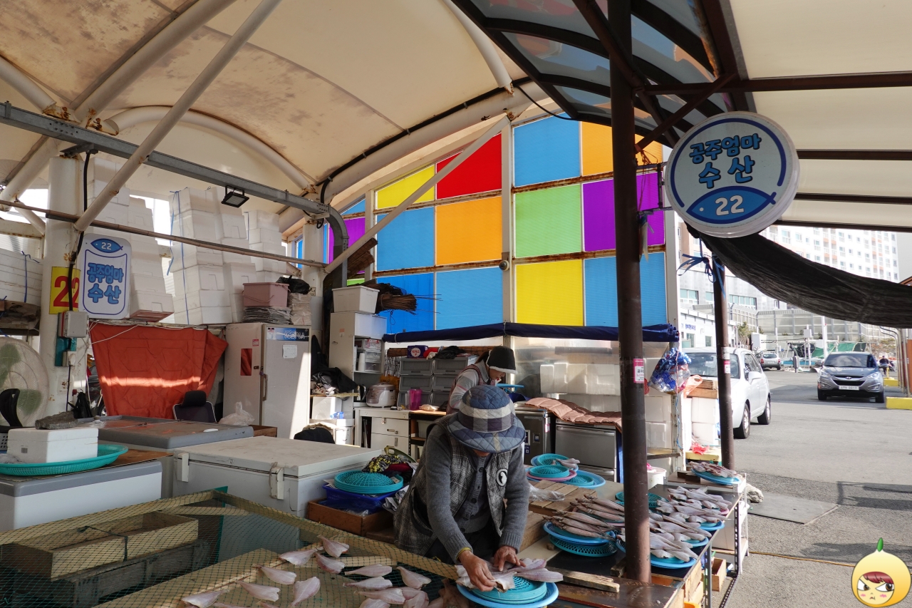 방어진공동어시장에 있는 공주엄마수산은 누군가의 소개도 아니고, 예전부터 알고 있던 곳도 아니다. 그저 처음 만난 점포일 뿐이다. 사진을 찍으면서 스캔(?)했을때, 어딜 가나 거기서 거기라는 느낌이 왔다. 굳이 여기저기 다닐 필요가 뭐가 있을까 싶어, 첫 번째 점포였던 공주엄마수산으로 정했다.